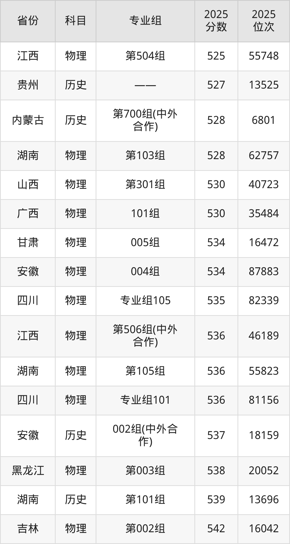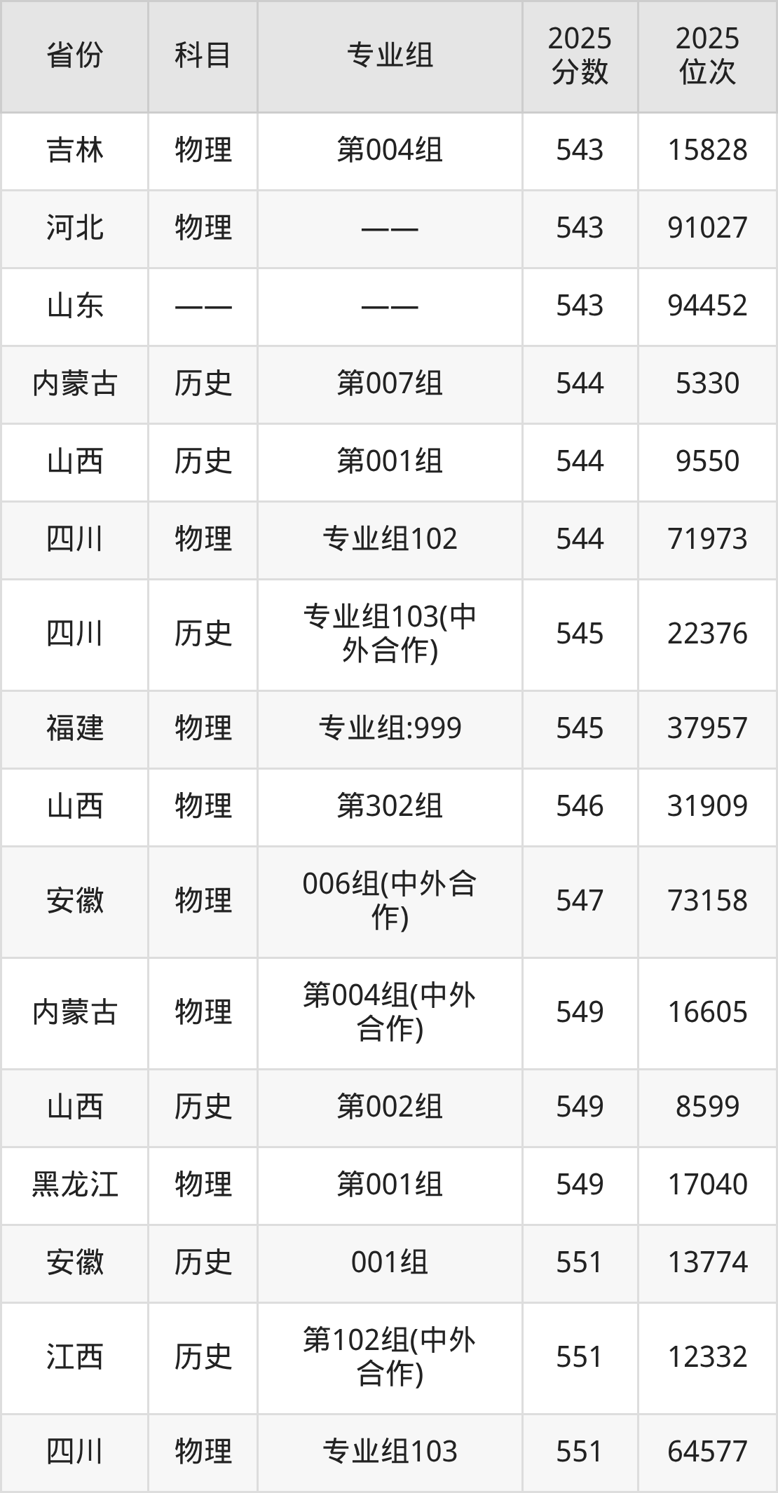 3+3地区:2025年上海应用技术大学录取最低分是543分(山东),对应的位次排名是94452名。