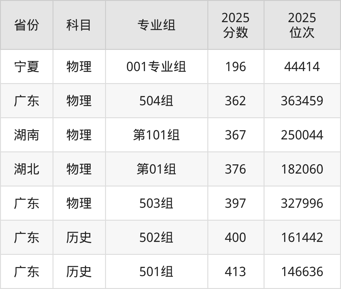 物理类:2025年广东茂名农林科技职业学院录取最低分是196分(宁夏),对应的位次排名是44414名。