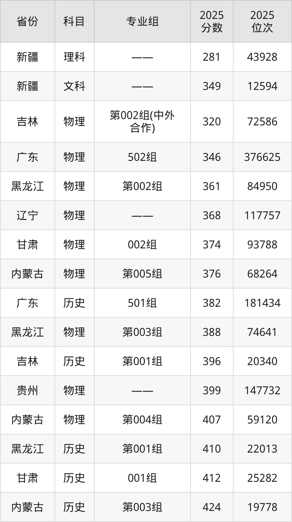 物理类:2025年广州工商学院录取最低分是320分(吉林),对应的位次排名是72586名。