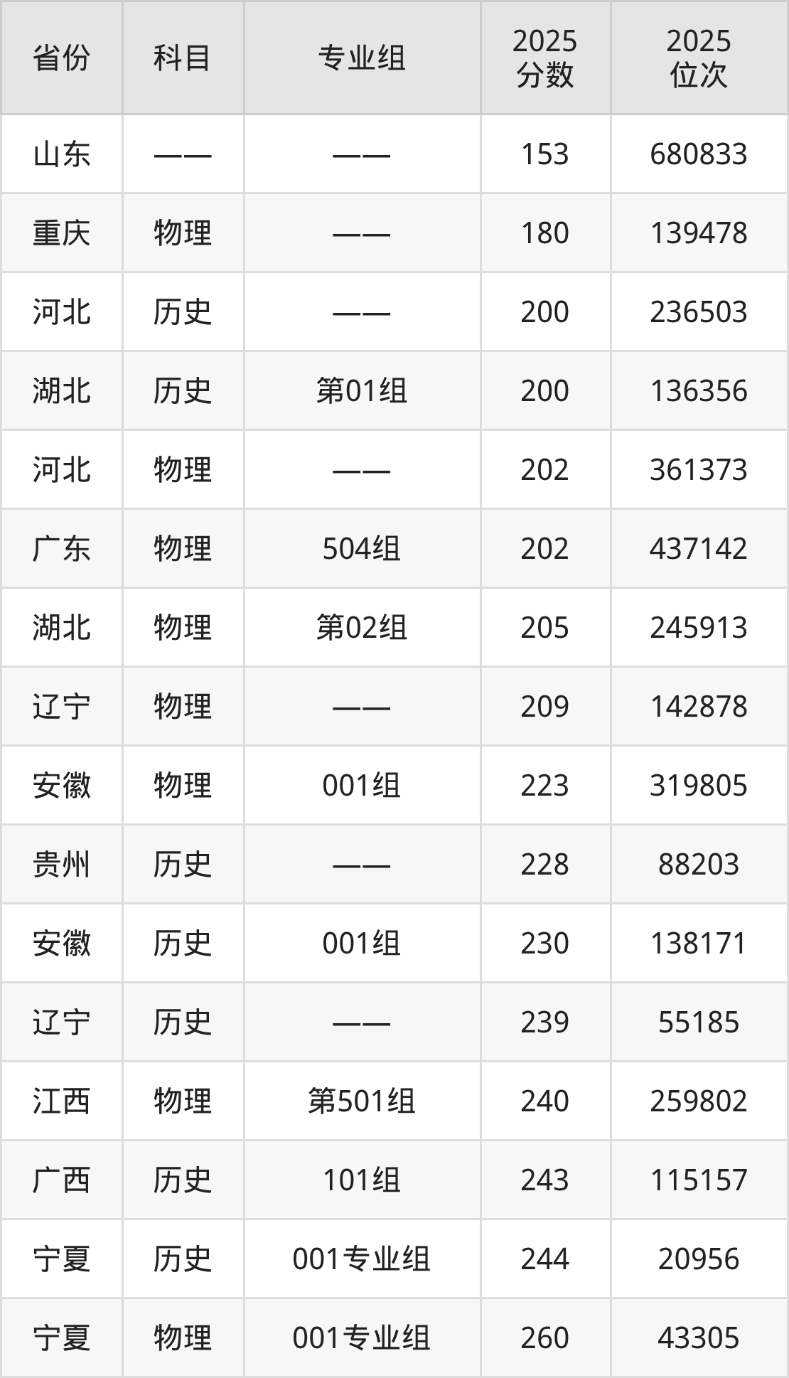 历史类:2025年四川文轩职业学院录取最低分是200分(河北),对应的位次排名是236503名。