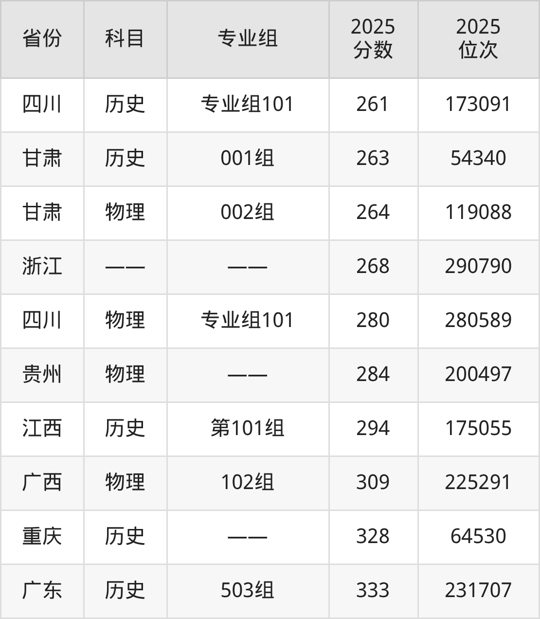 物理类:2025年四川文轩职业学院录取最低分是180分(重庆),对应的位次排名是139478名。