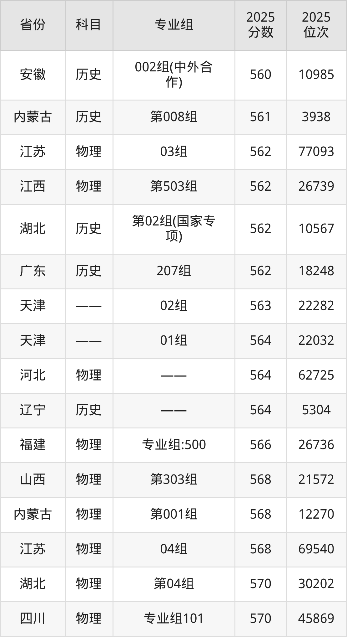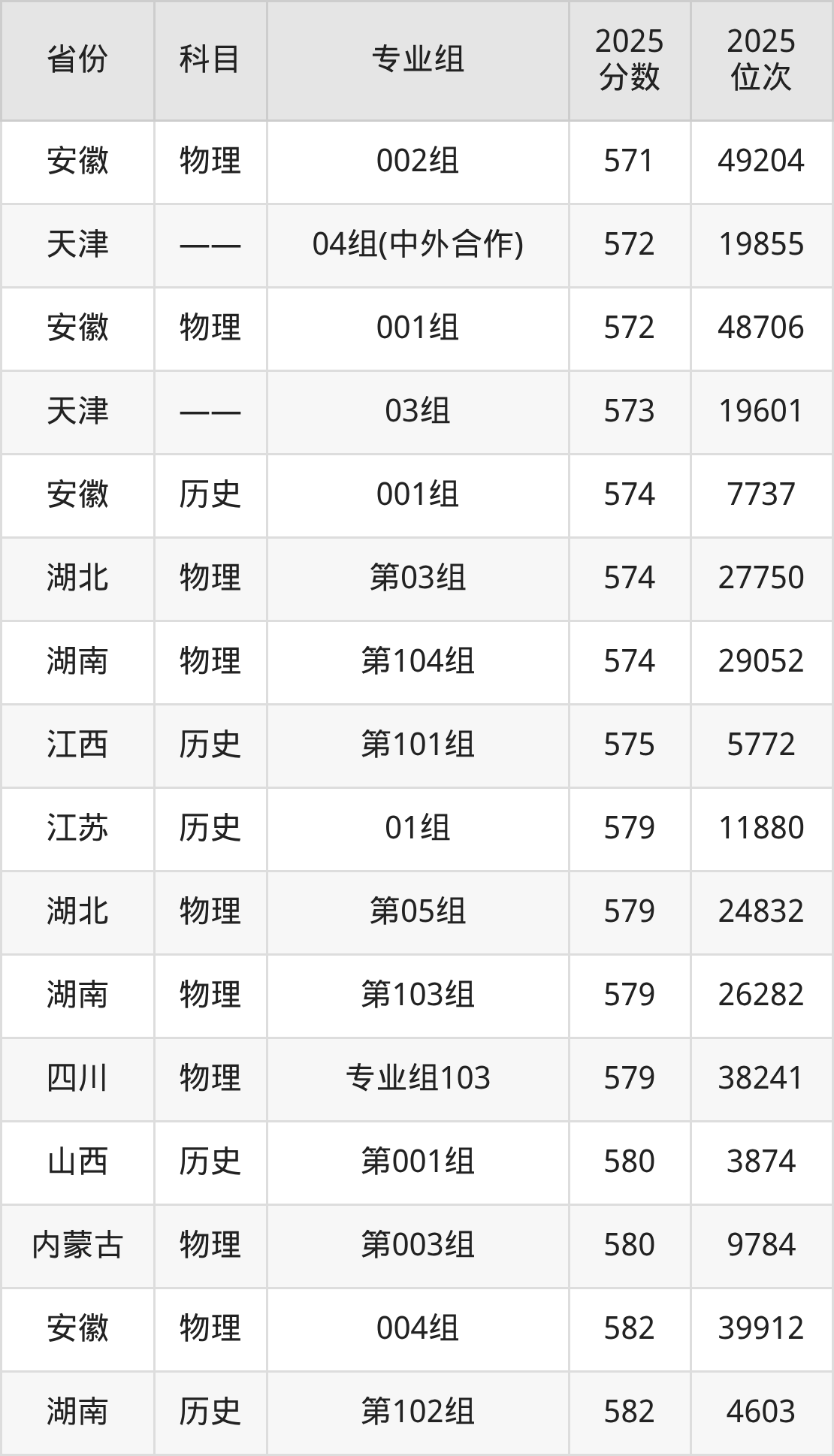 2025年天津财经大学全国录取分数线一览表: