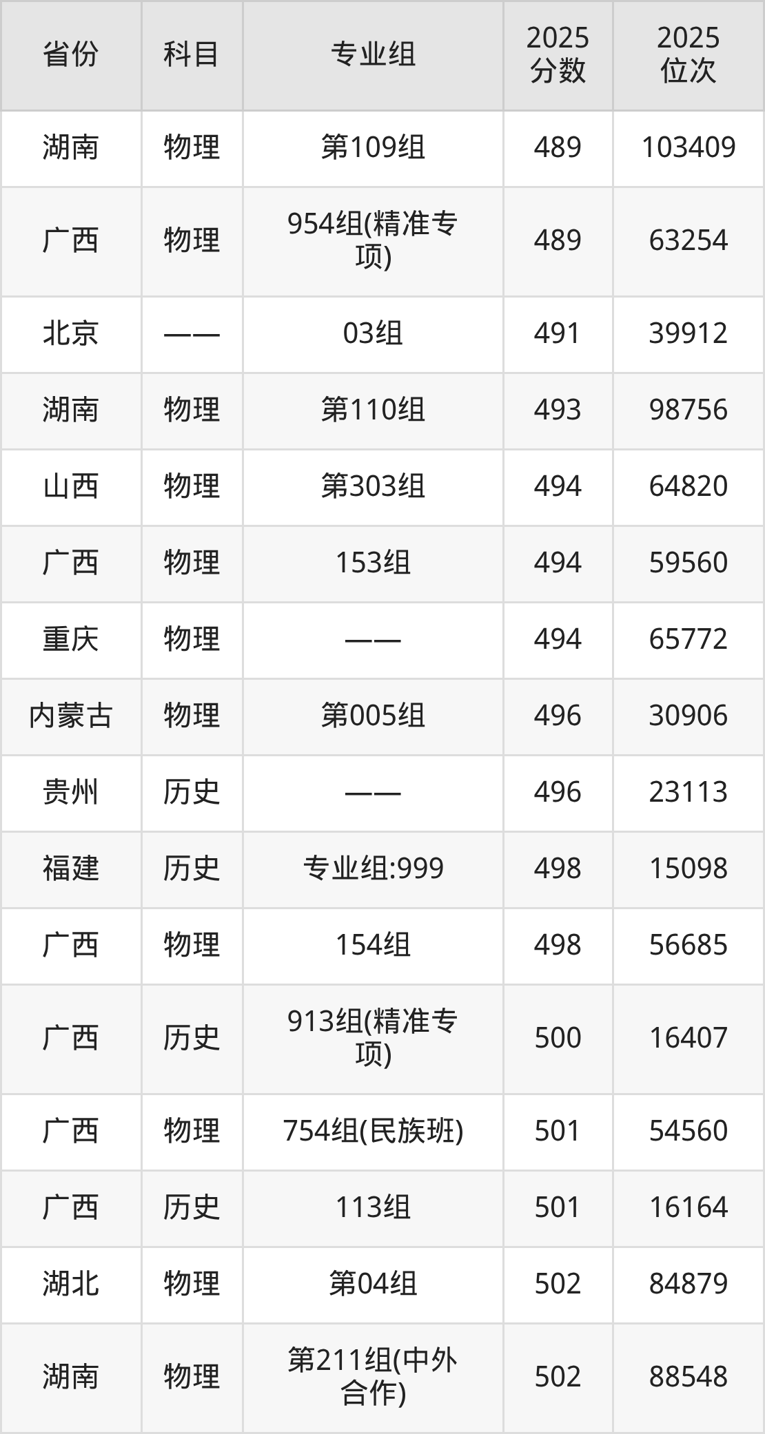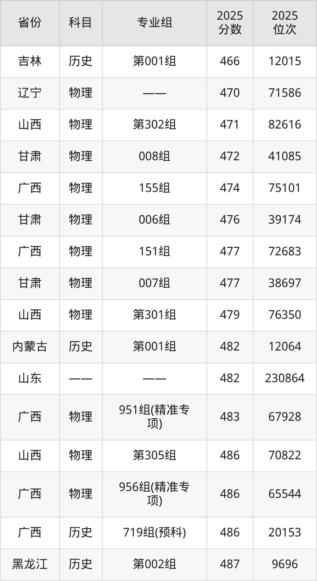 历史类:2025年南宁师范大学壮族自治区内录取最低分是486分,对应的位次排名是20153名。建议:如果2026年排名超过20153名,那么被该校录取的概率较大。