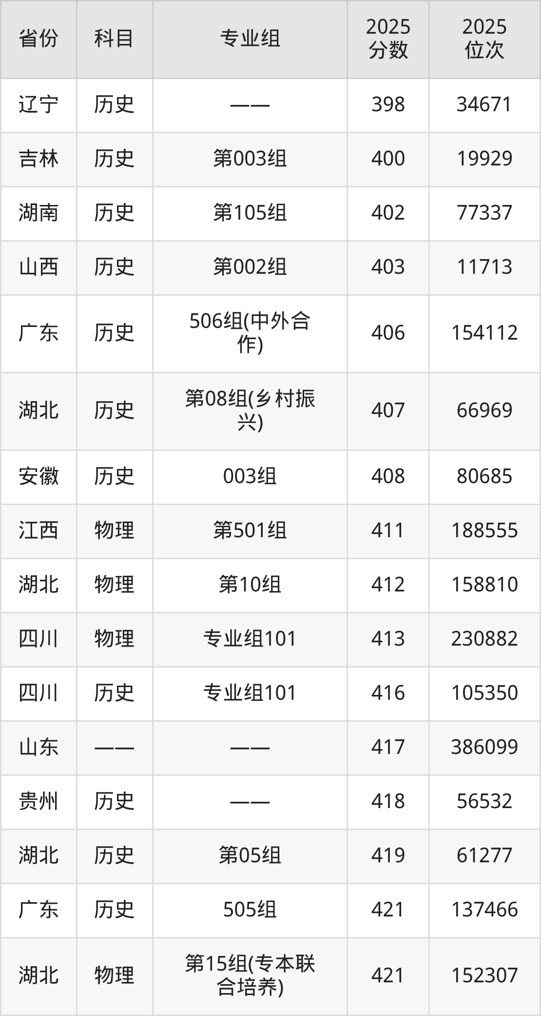 3+3地区:2025年湖北交通职业技术学院录取最低分是417分(山东),对应的位次排名是386099名。