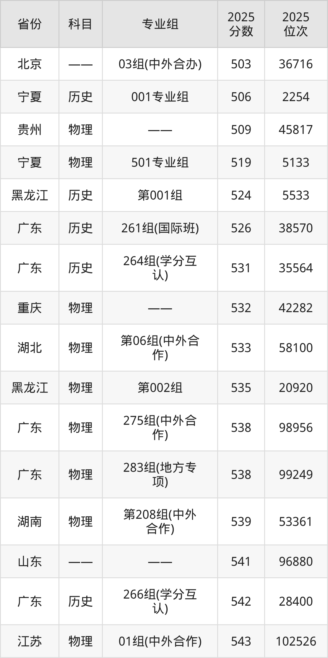 2025年广东工业大学全国排名第105位,2025年录取分数线最低503分(位次36716)。本文将展示广东工业大学在各省最低录取分数线汇总,供2026届想要报考该校的考生查阅。