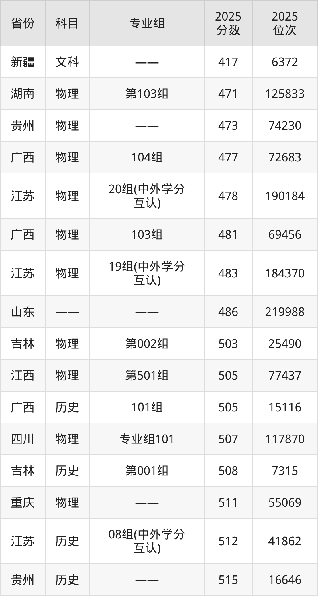 历史类:2025年江苏第二师范学院录取最低分是505分(广西),对应的位次排名是15116名。