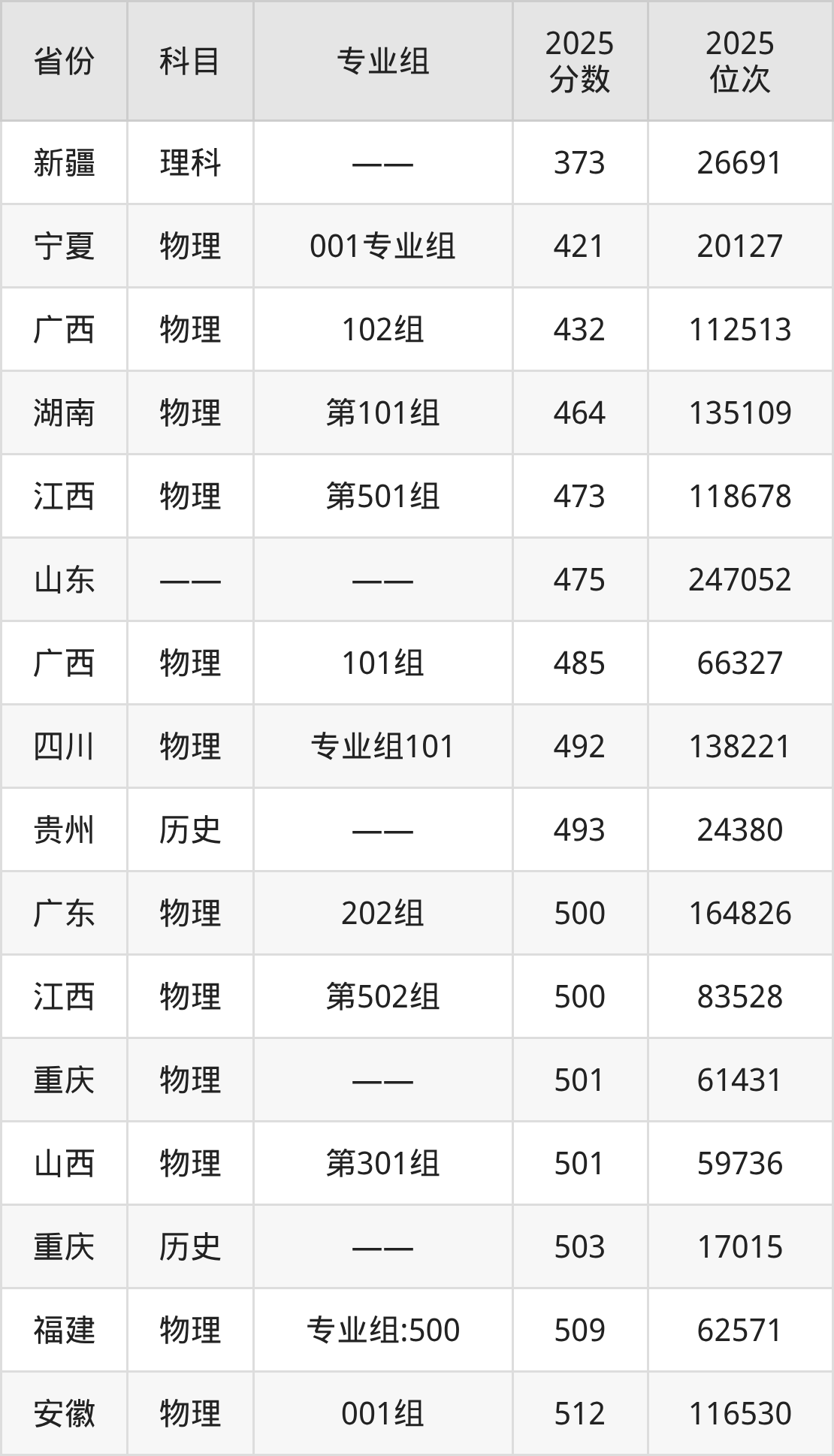 物理类:2025年河南工学院录取最低分是421分(宁夏),对应的位次排名是20127名。