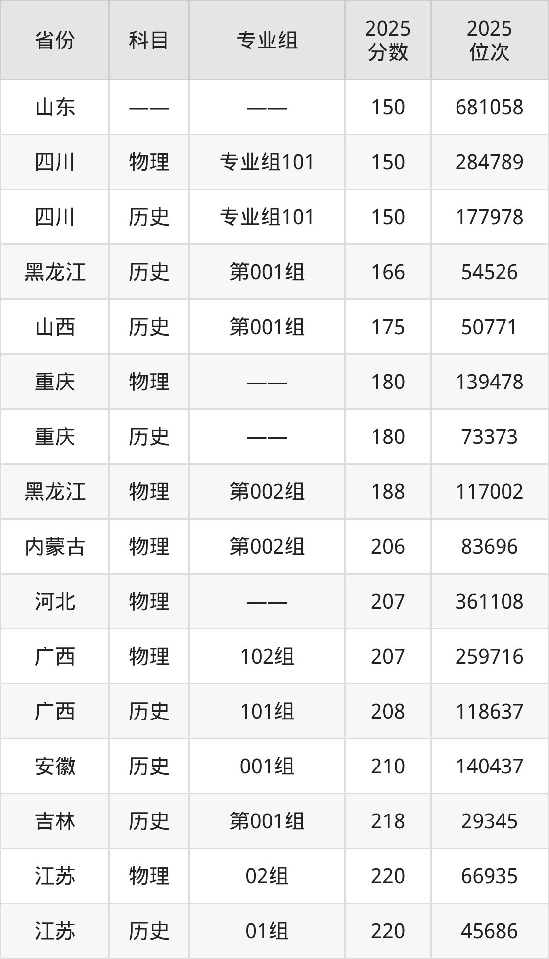历史类:2025年烟台黄金职业学院录取最低分是150分(四川),对应的位次排名是177978名。