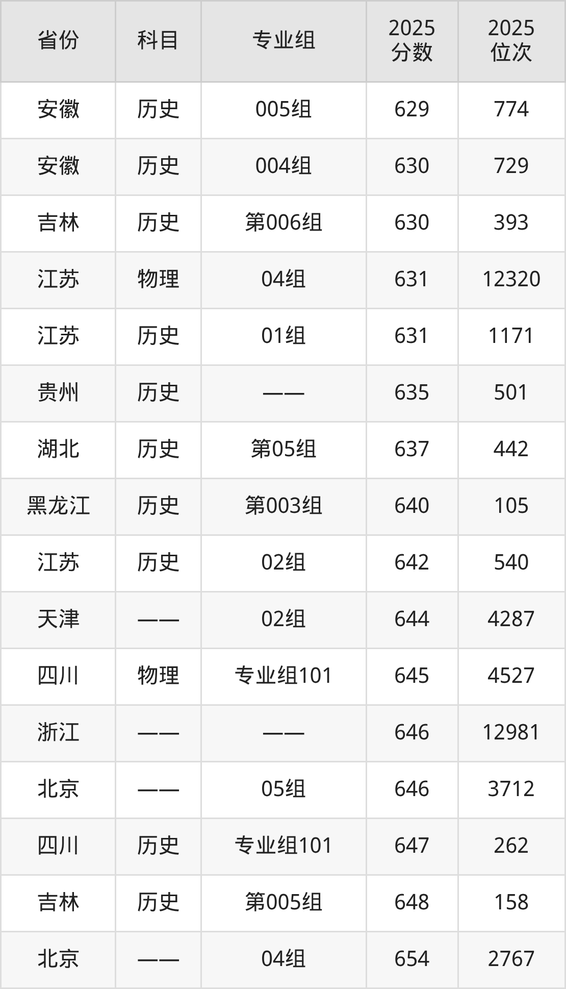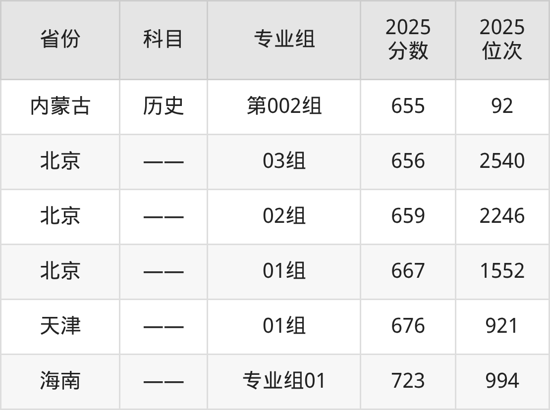 2025年中国政法大学全国录取分数线一览表: