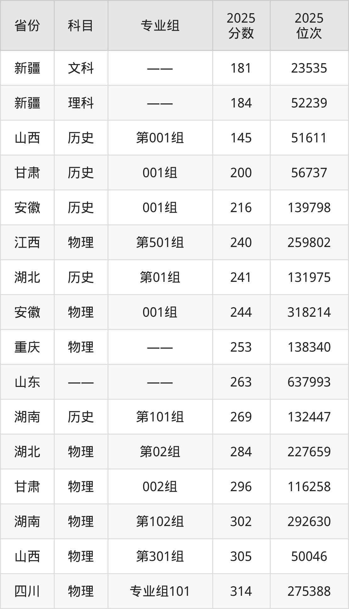 历史类:2025年图木舒克职业技术学院录取最低分是145分(山西),对应的位次排名是51611名。
