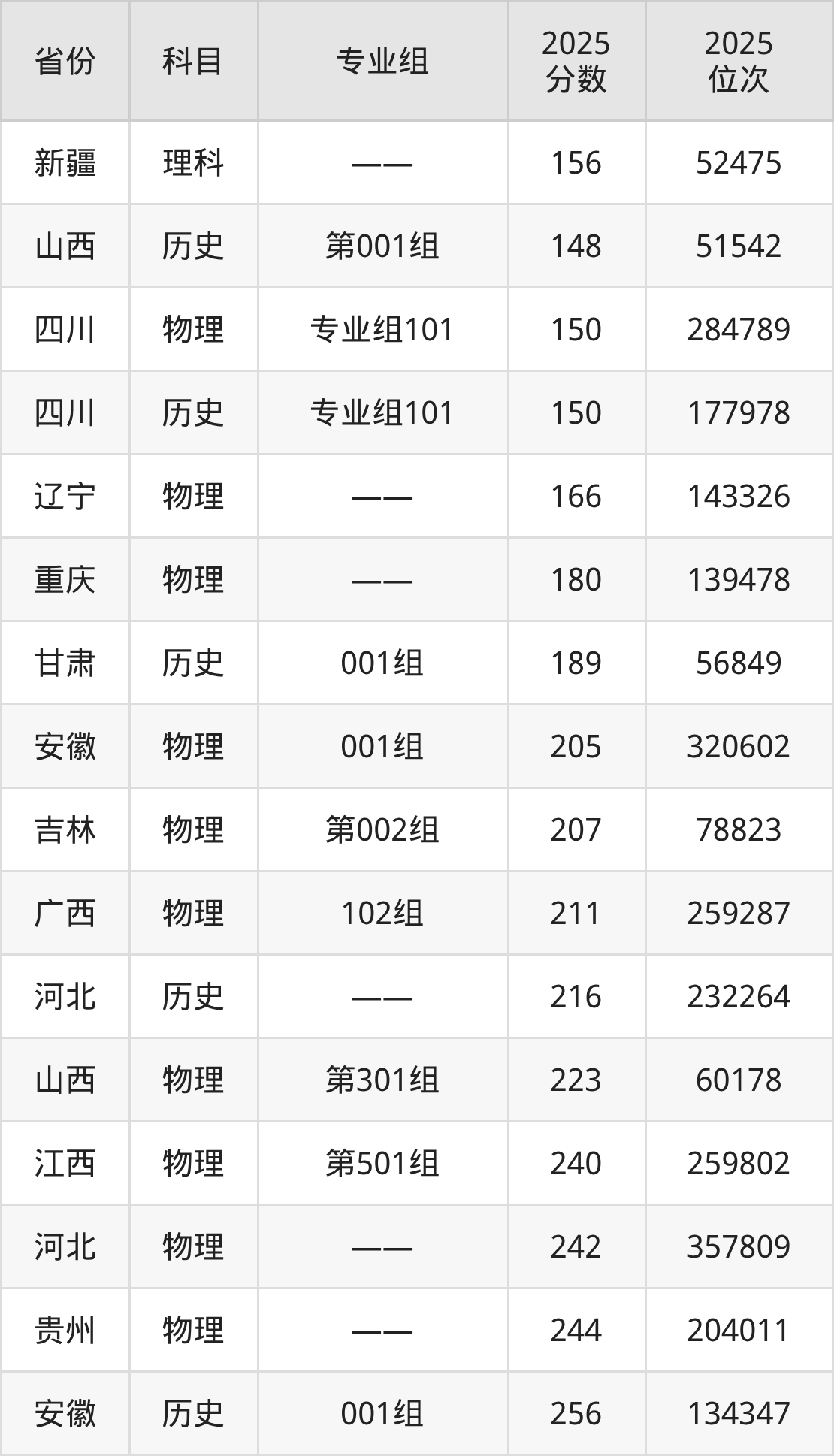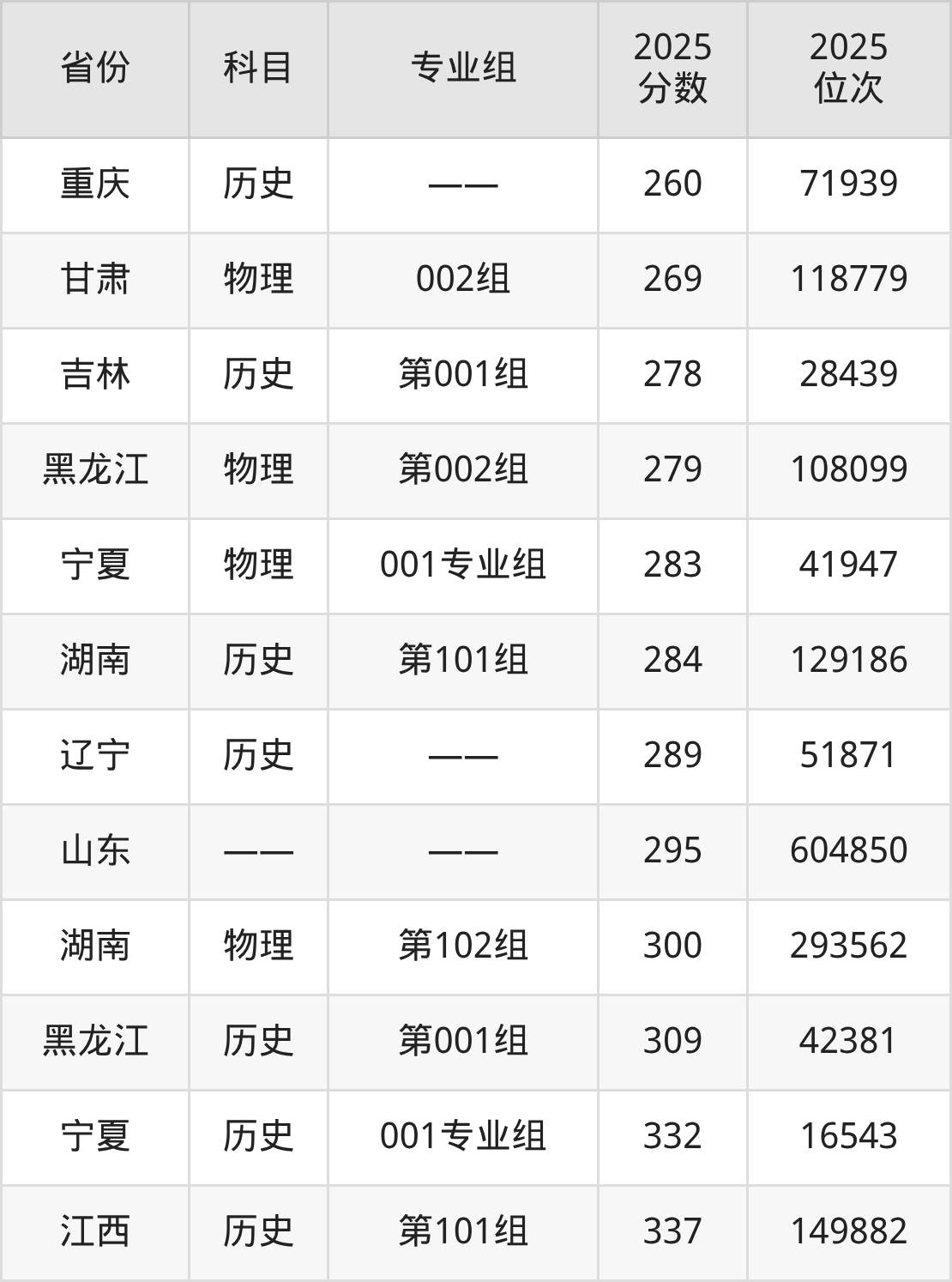 物理类:2025年大连汽车职业技术学院录取最低分是150分(四川),对应的位次排名是284789名。