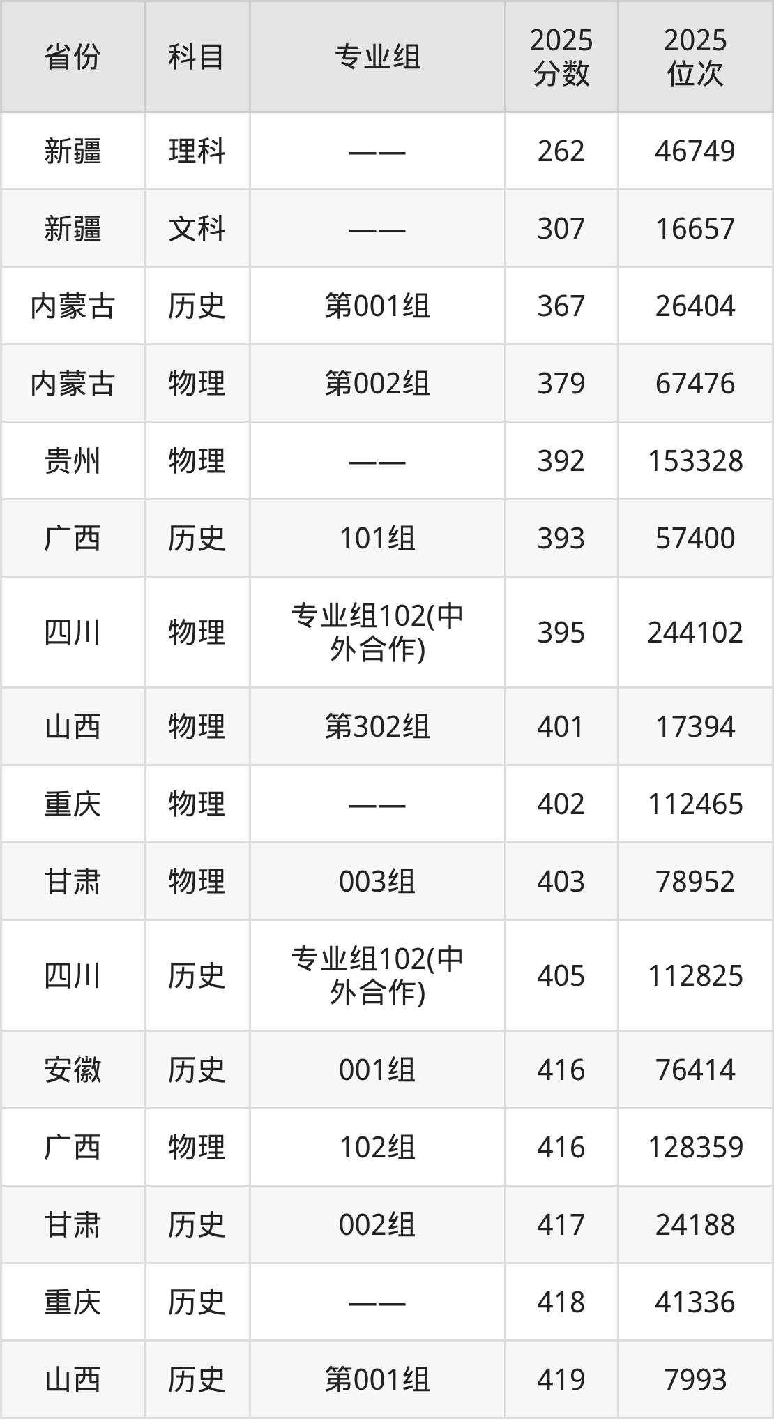 物理类:2025年重庆航天职业技术学院录取最低分是379分(内蒙古),对应的位次排名是67476名。