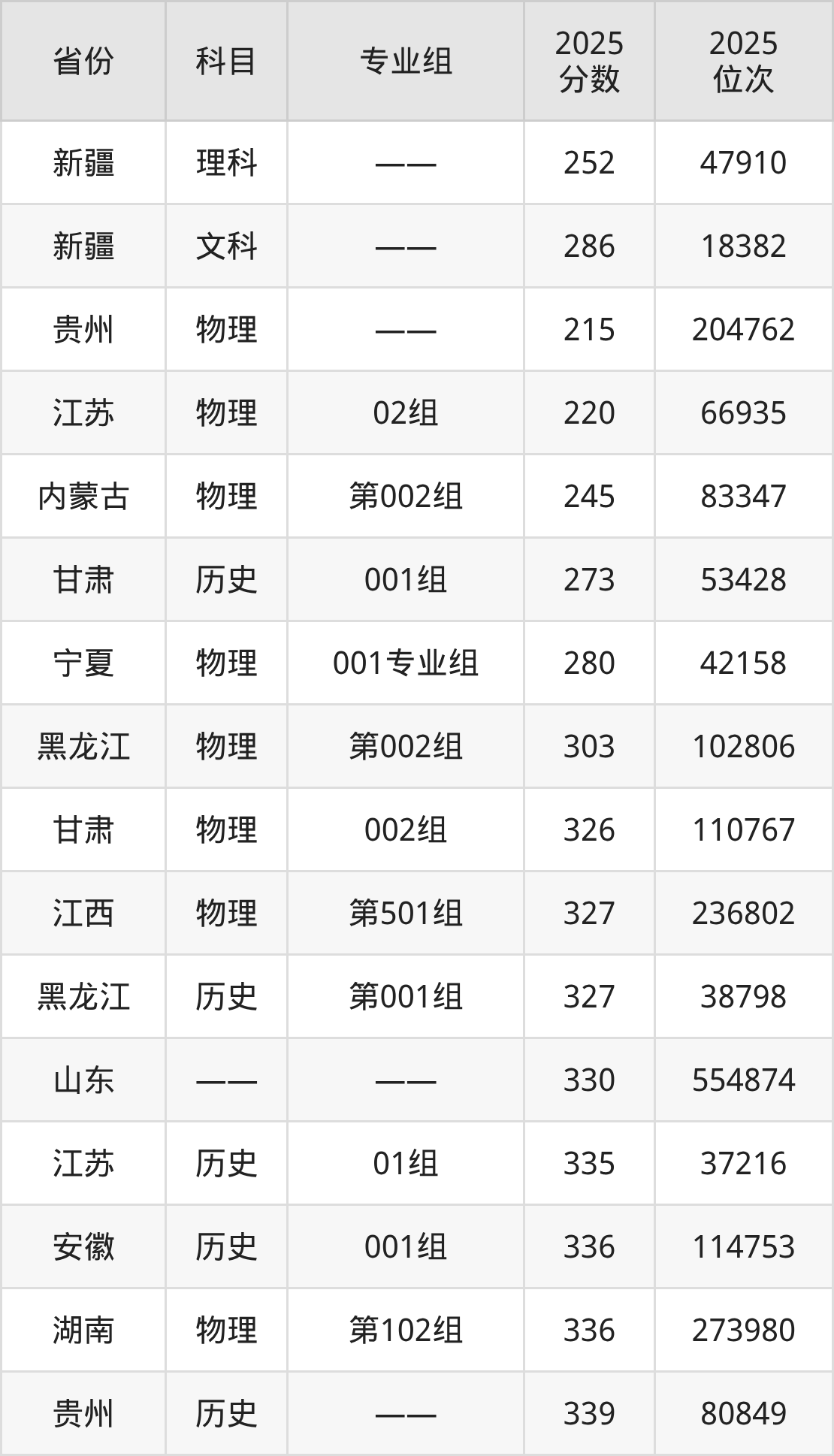 理科:2025年济源职业技术学院录取最低分是252分(新疆),对应的位次排名是47910名。