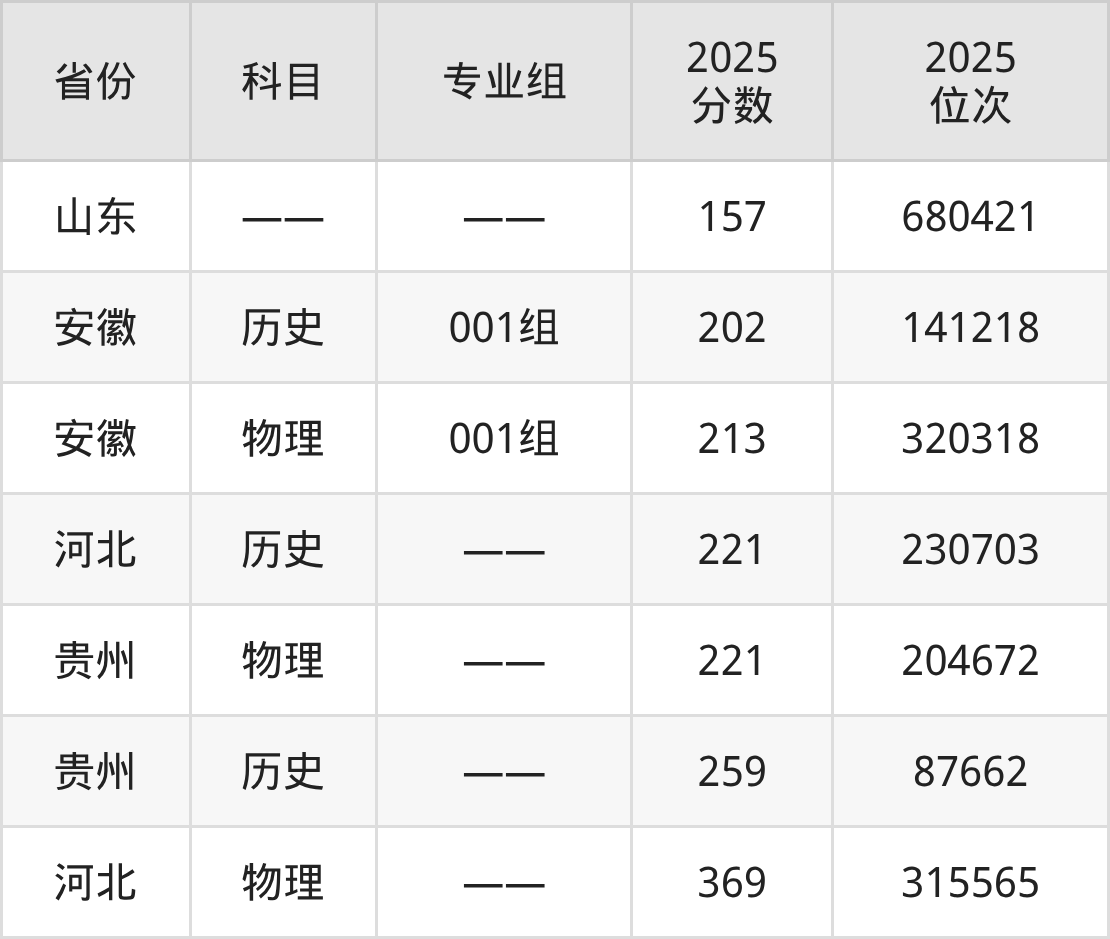 物理类:2025年长沙南方职业学院录取最低分是213分(安徽),对应的位次排名是320318名。