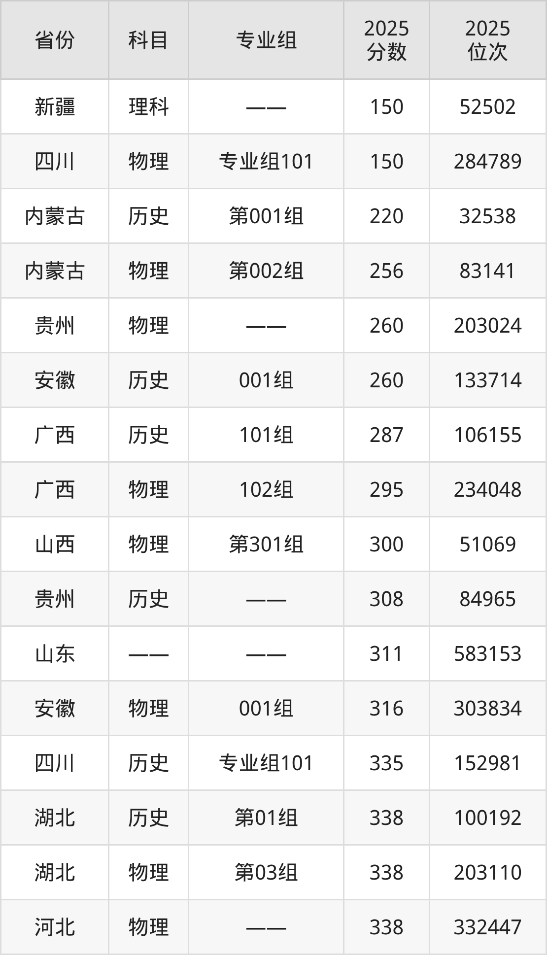 物理类:2025年武汉信息传播职业技术学院录取最低分是150分(四川),对应的位次排名是284789名。