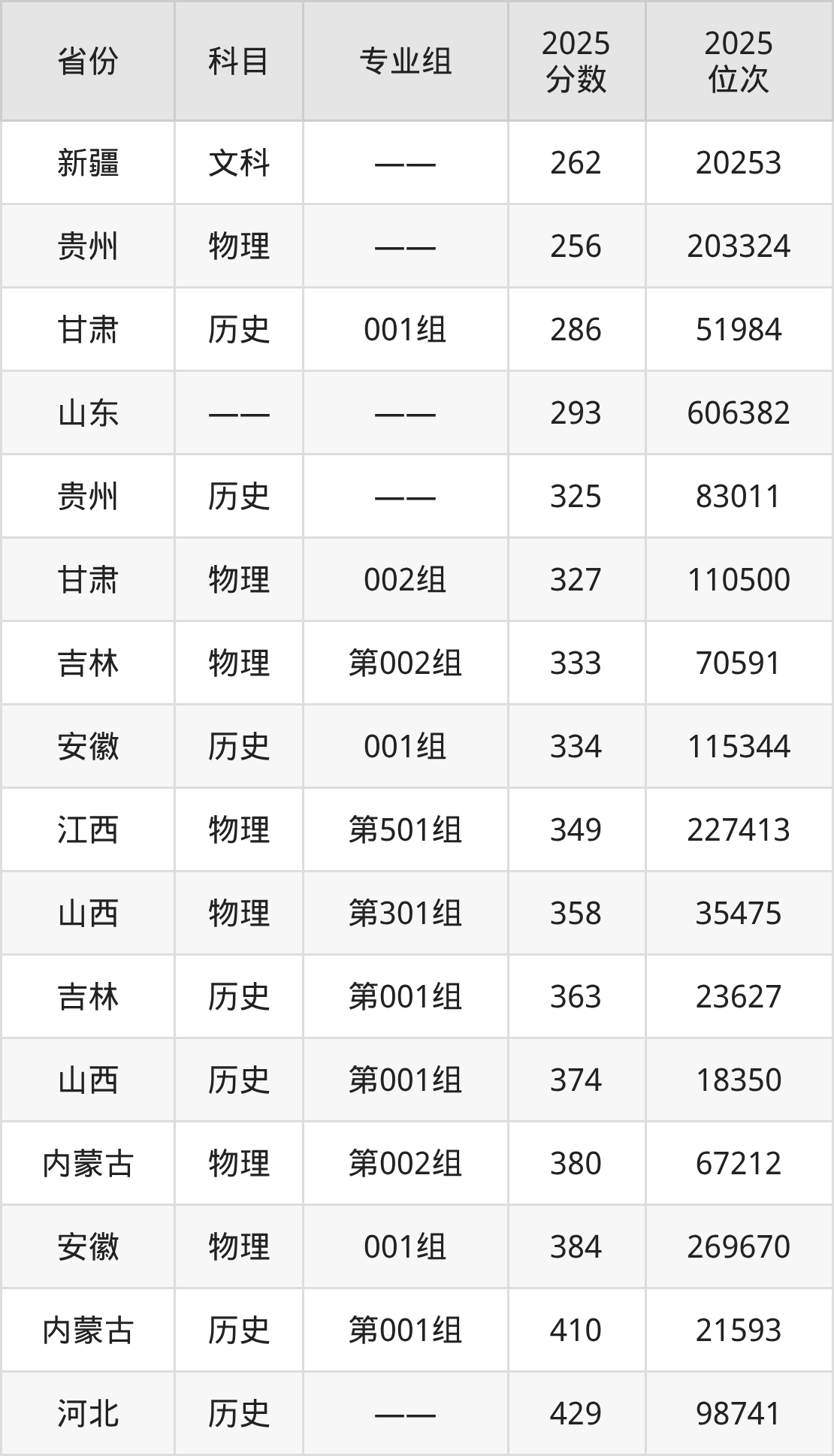 物理类:2025年济宁职业技术学院录取最低分是256分(贵州),对应的位次排名是203324名。