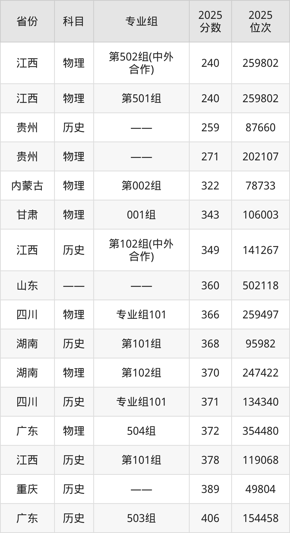 物理类:2025年抚州职业技术学院录取最低分是271分(贵州),对应的位次排名是202107名。