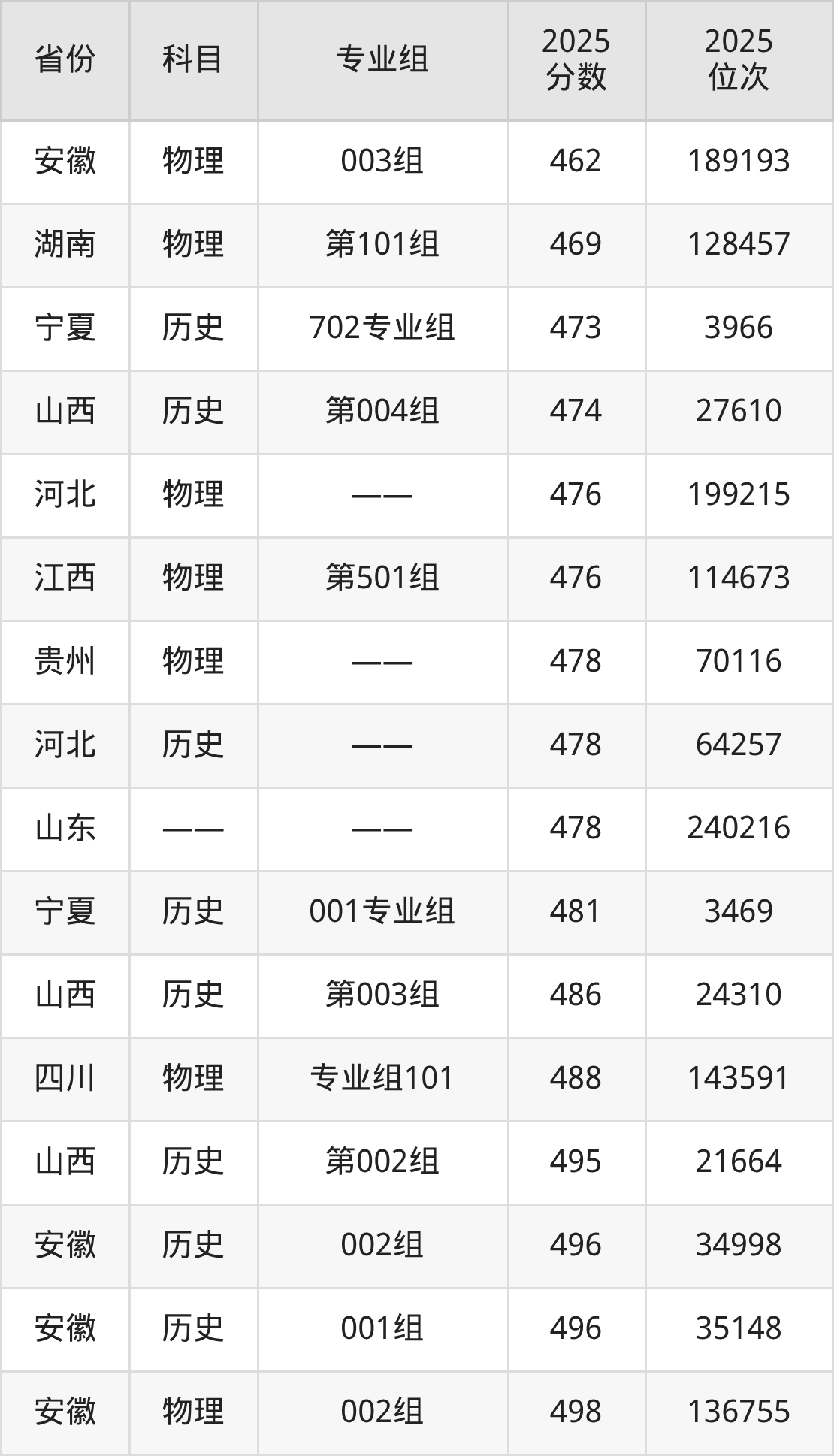 物理类:2025年张家口学院省内录取最低分是476分,对应的位次排名是199215名。建议:如果2026年排名超过199215名,那么被该校录取的概率较大。
