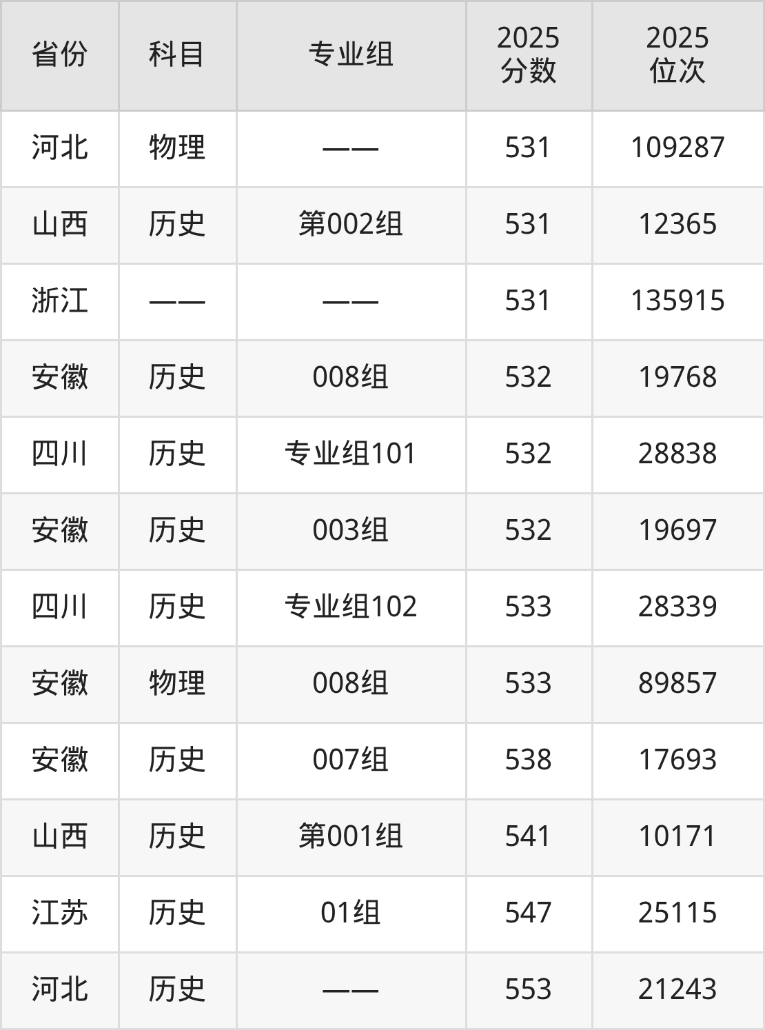 2025年阜阳师范大学全国排名第318位,2025年录取分数线最低429分(位次58069)。本文将展示阜阳师范大学在各省最低录取分数线汇总,供2026届想要报考该校的考生查阅。