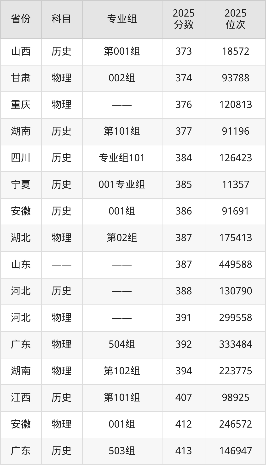3+3地区:2025年江西机电职业技术学院录取最低分是387分(山东),对应的位次排名是449588名。