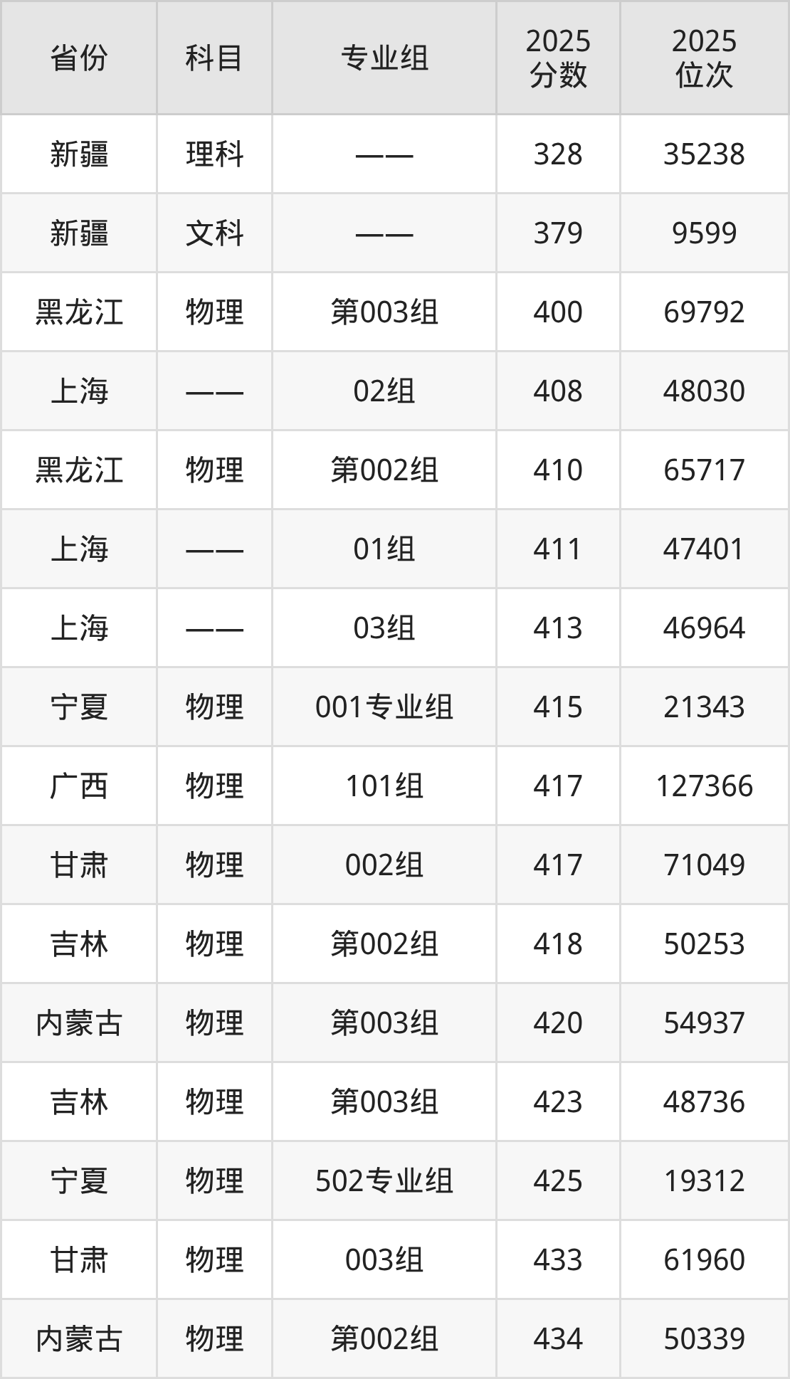 文科:2025年石家庄铁道大学四方学院录取最低分是379分(新疆),对应的位次排名是9599名。