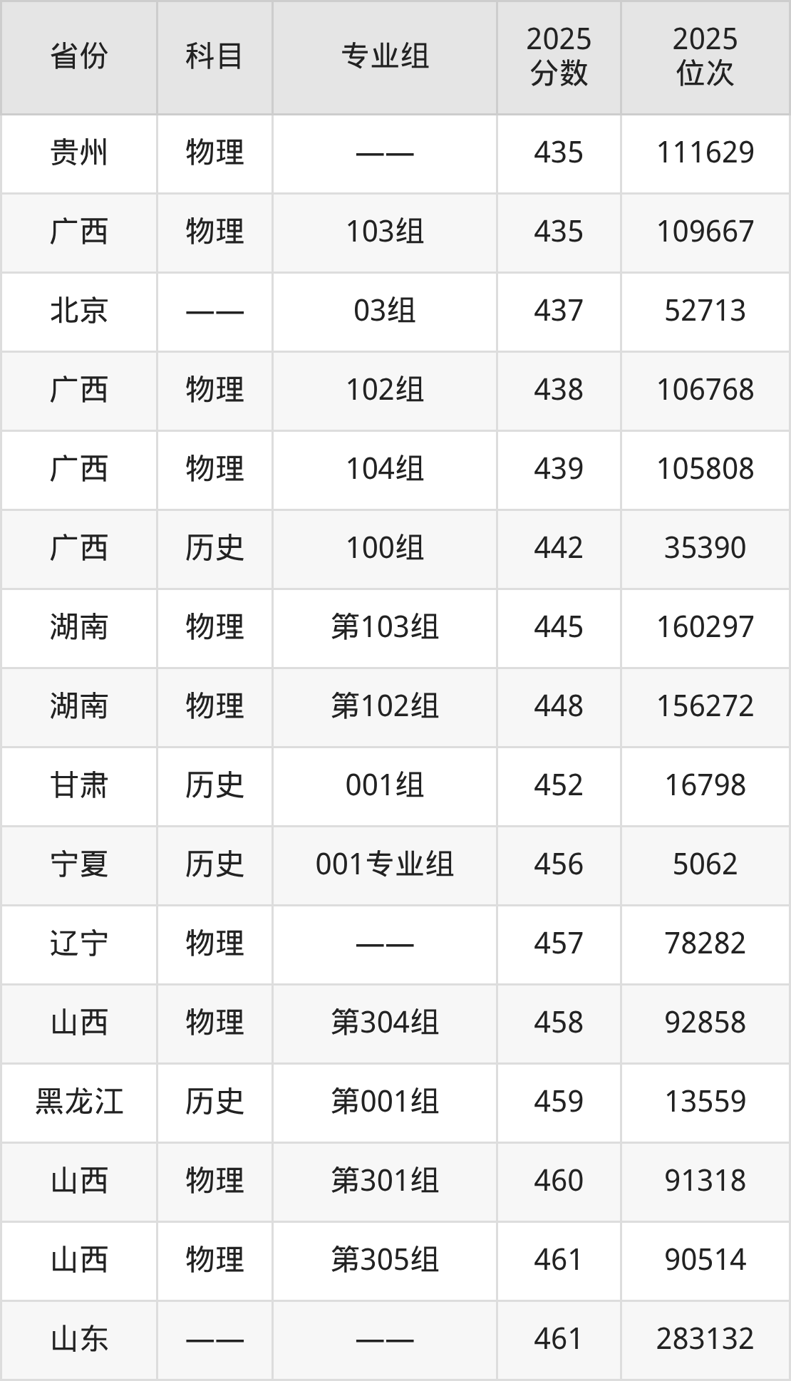 历史类:2025年石家庄铁道大学四方学院录取最低分是442分(广西),对应的位次排名是35390名。