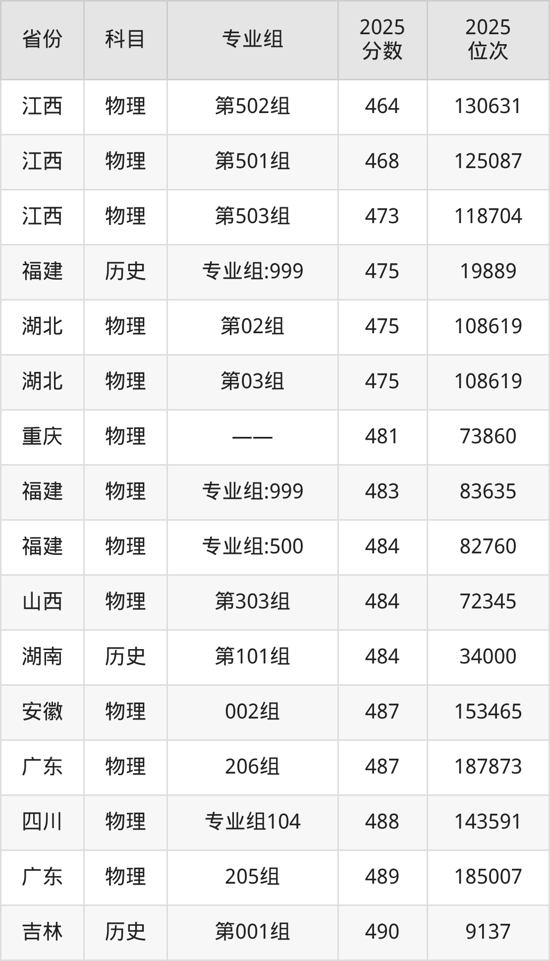 物理类:2025年石家庄铁道大学四方学院省内录取最低分是494分,对应的位次排名是170629名。建议:如果2026年排名超过170629名,那么被该校录取的概率较大。