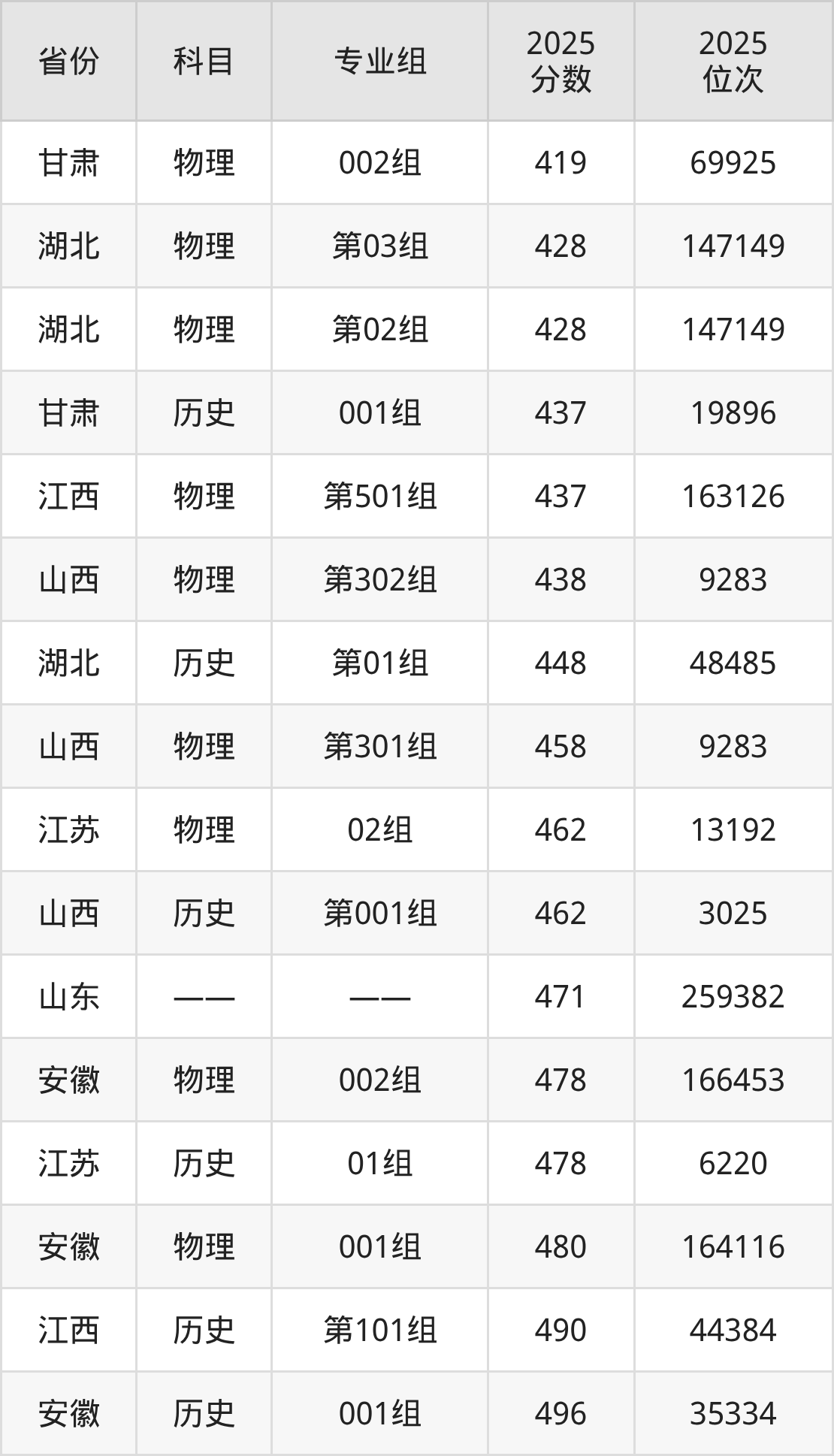 物理类:2025年郑州铁路职业技术学院录取最低分是419分(甘肃),对应的位次排名是69925名。