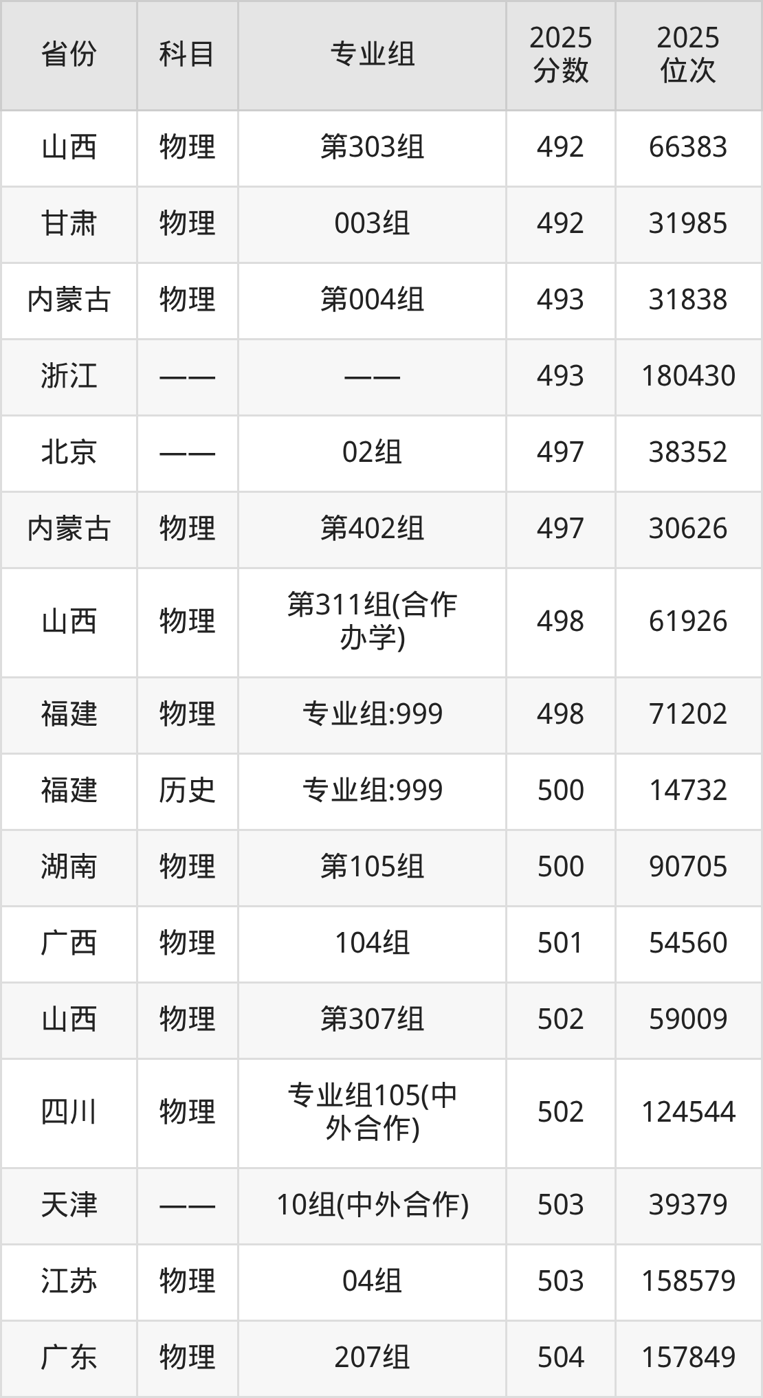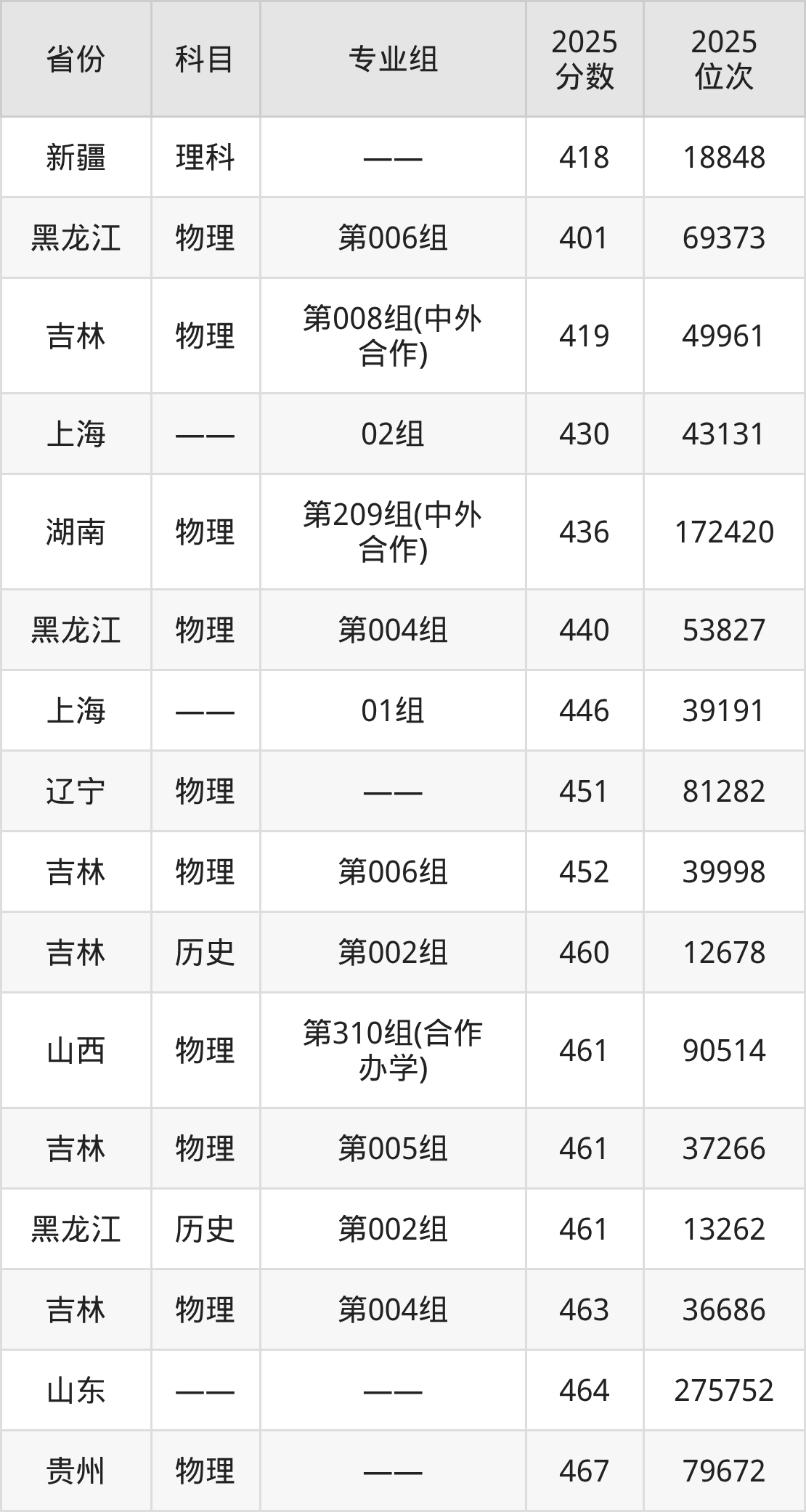 物理类:2025年河北工程大学录取最低分是401分(黑龙江),对应的位次排名是69373名。