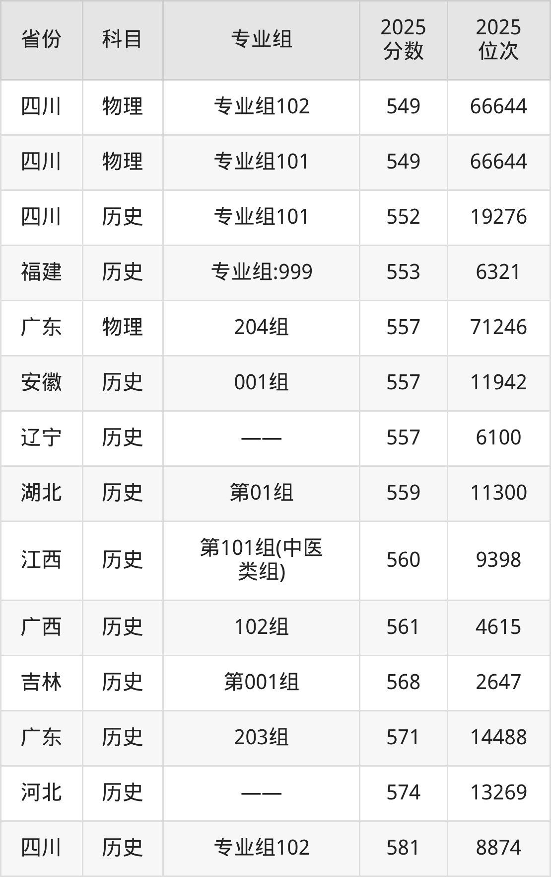 历史类:2025年重庆中医药学院录取最低分是521分(贵州),对应的位次排名是15000名。