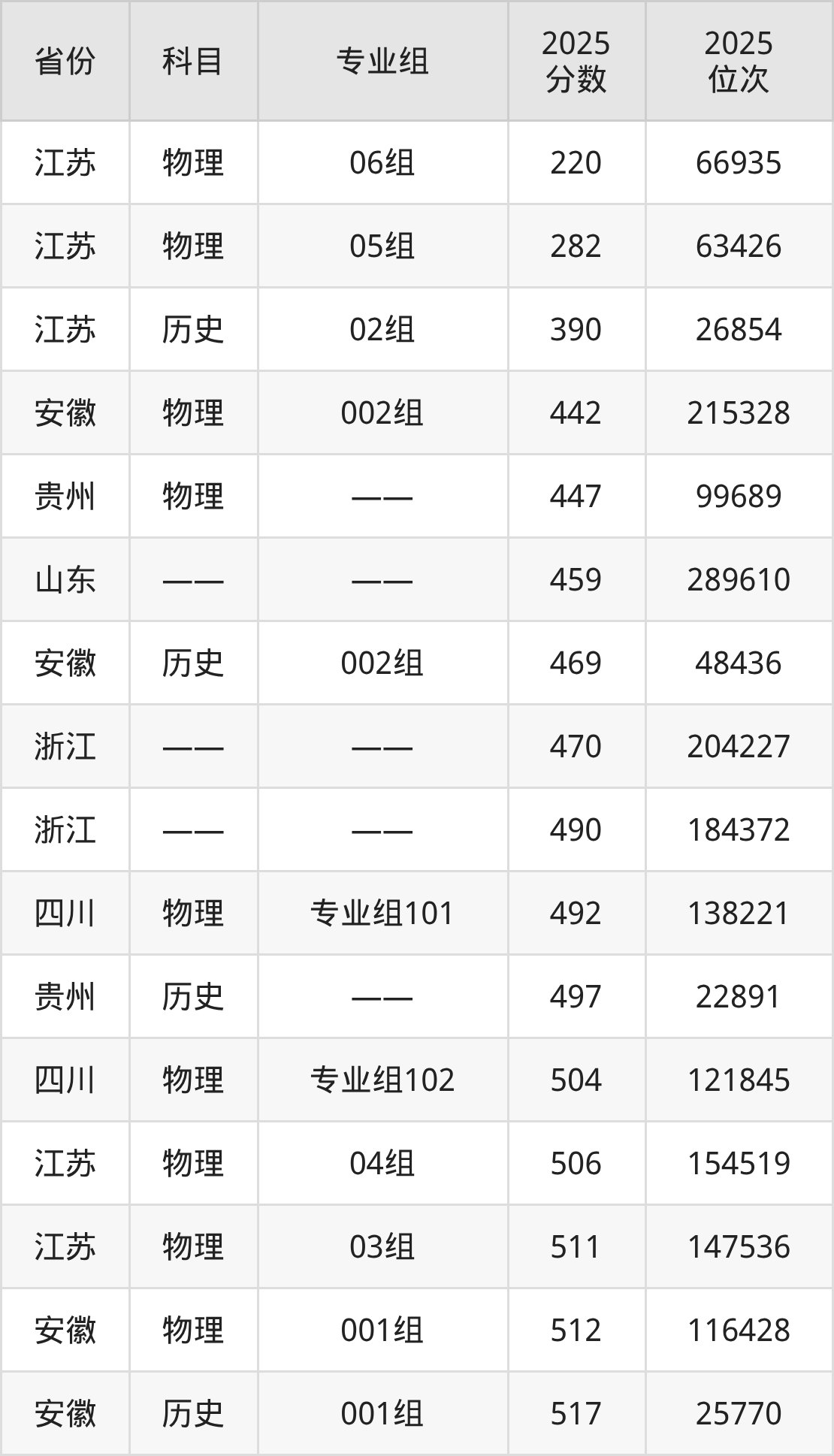 物理类:2025年连云港师范学院录取最低分是442分(安徽),对应的位次排名是215328名。