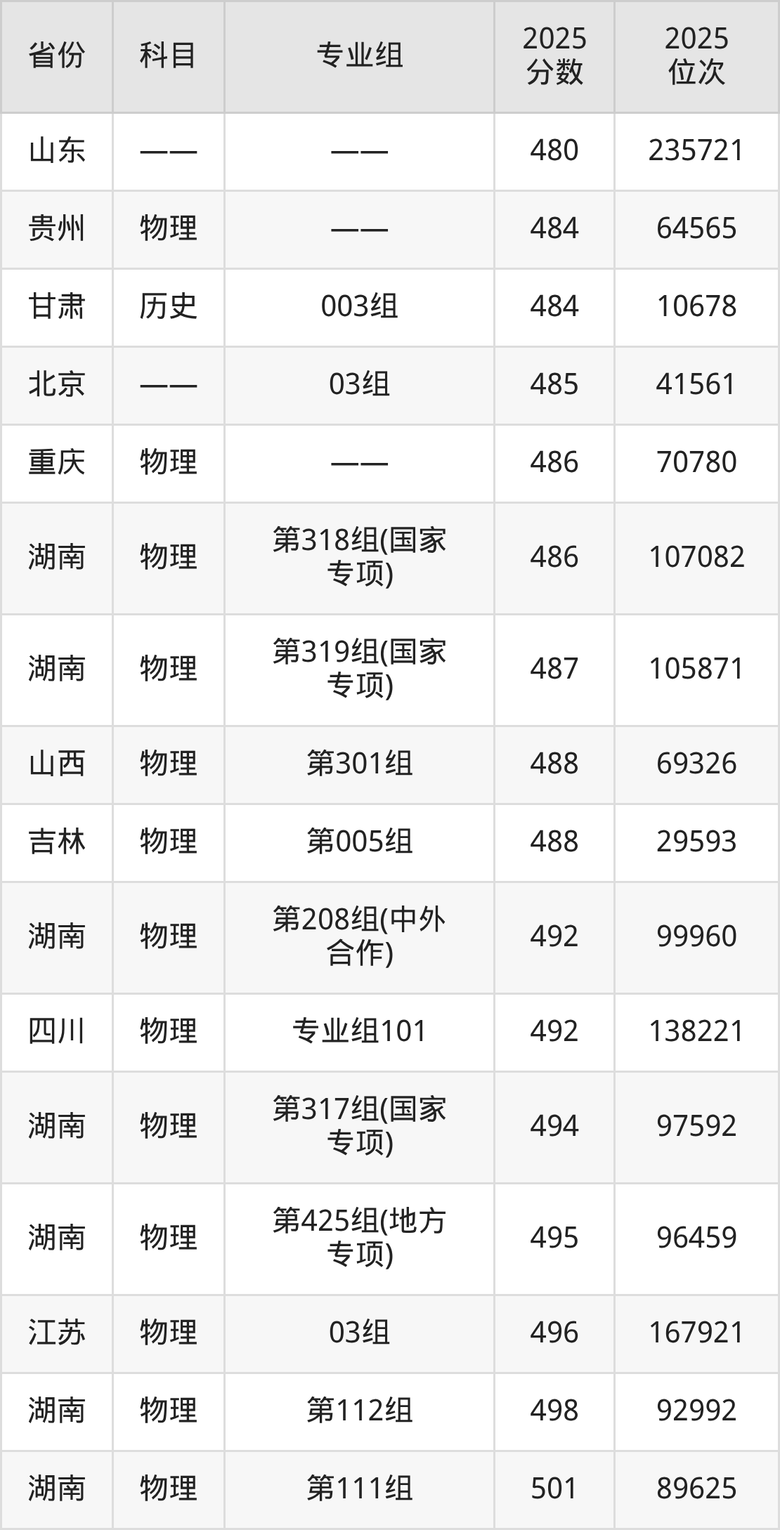 3+3地区:2025年中南林业科技大学录取最低分是480分(山东),对应的位次排名是235721名。