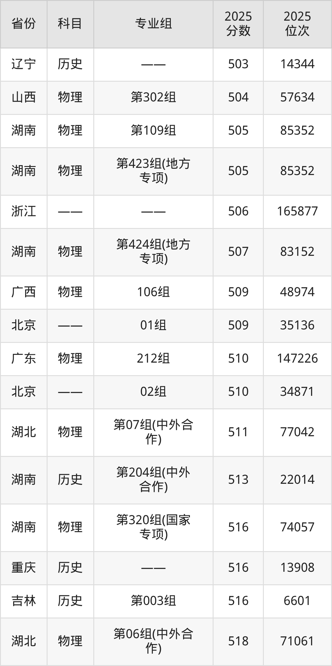 物理类:2025年中南林业科技大学省内录取最低分是471分,对应的位次排名是125833名。建议:如果2026年排名超过125833名,那么被该校录取的概率较大。