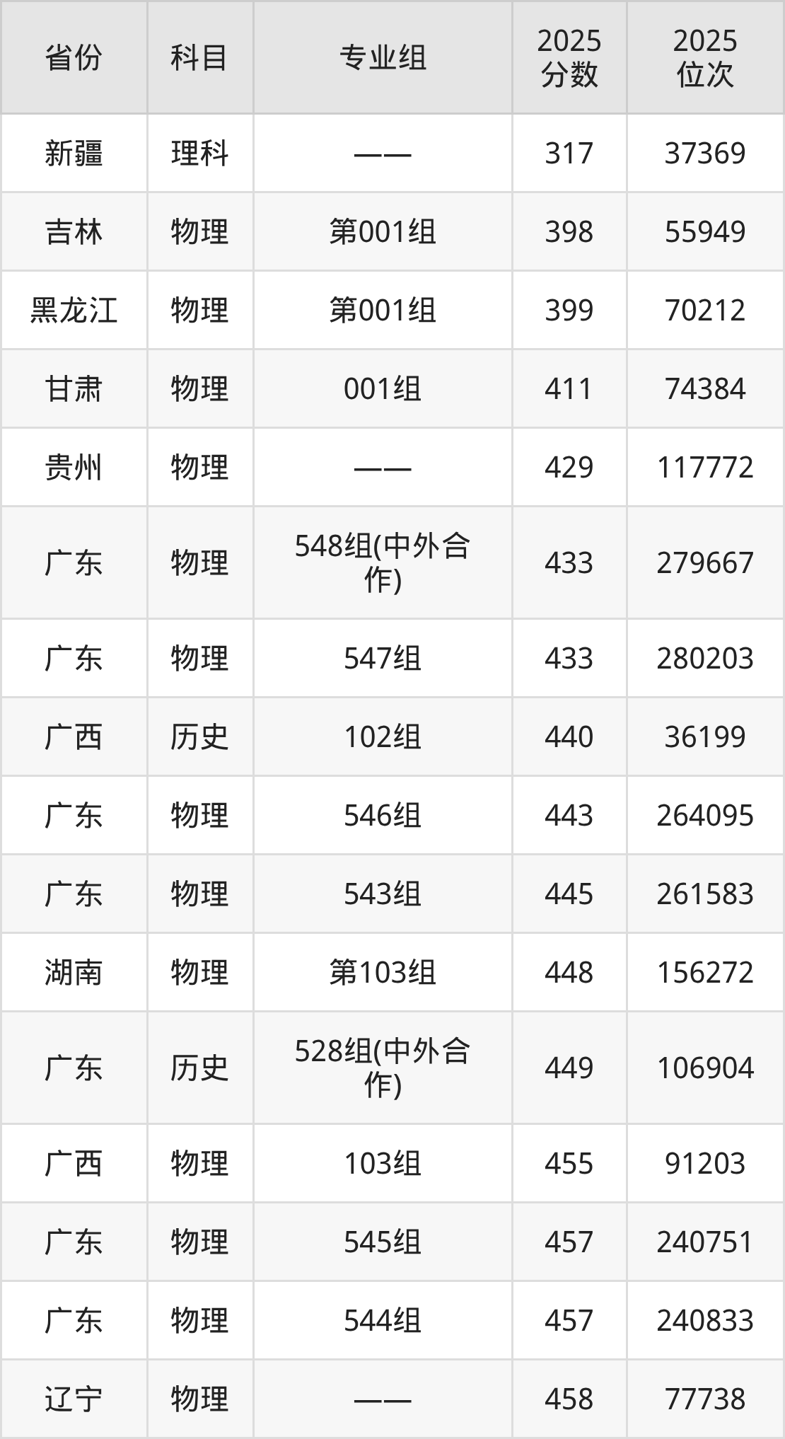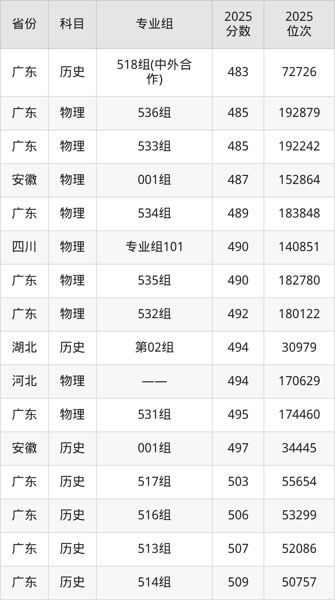 历史类:2025年深圳职业技术大学录取最低分是440分(广西),对应的位次排名是36199名。