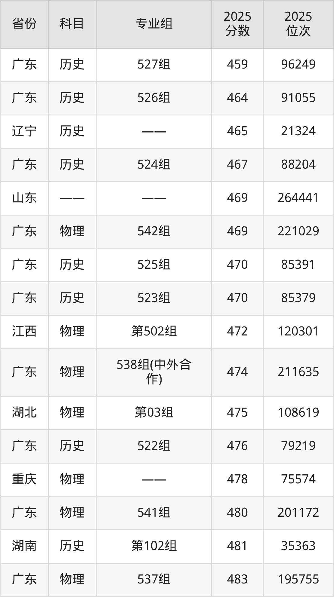 3+3地区:2025年深圳职业技术大学录取最低分是469分(山东),对应的位次排名是264441名。