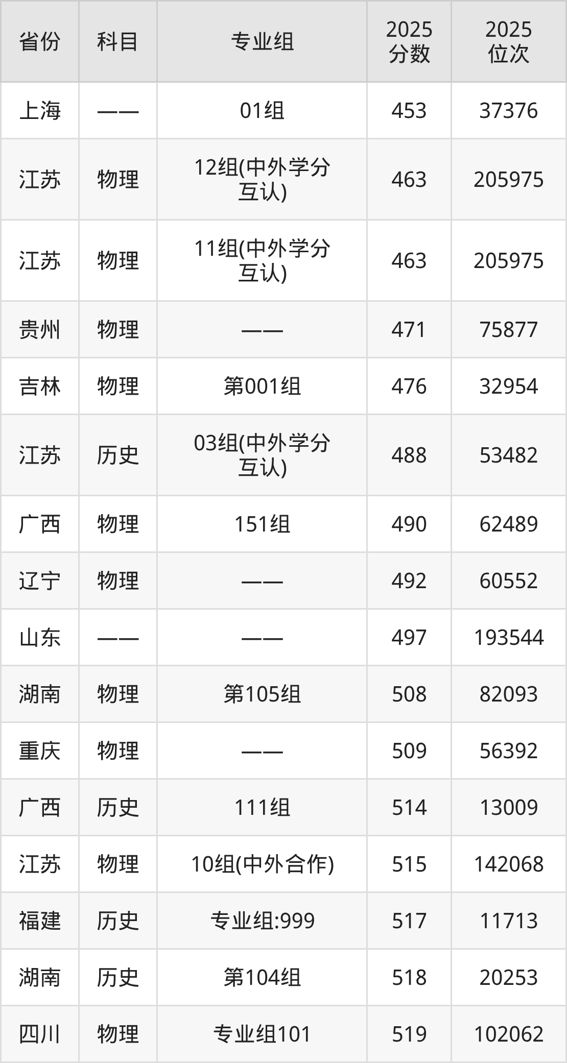 物理类:2025年苏州工学院录取最低分是471分(贵州),对应的位次排名是75877名。
