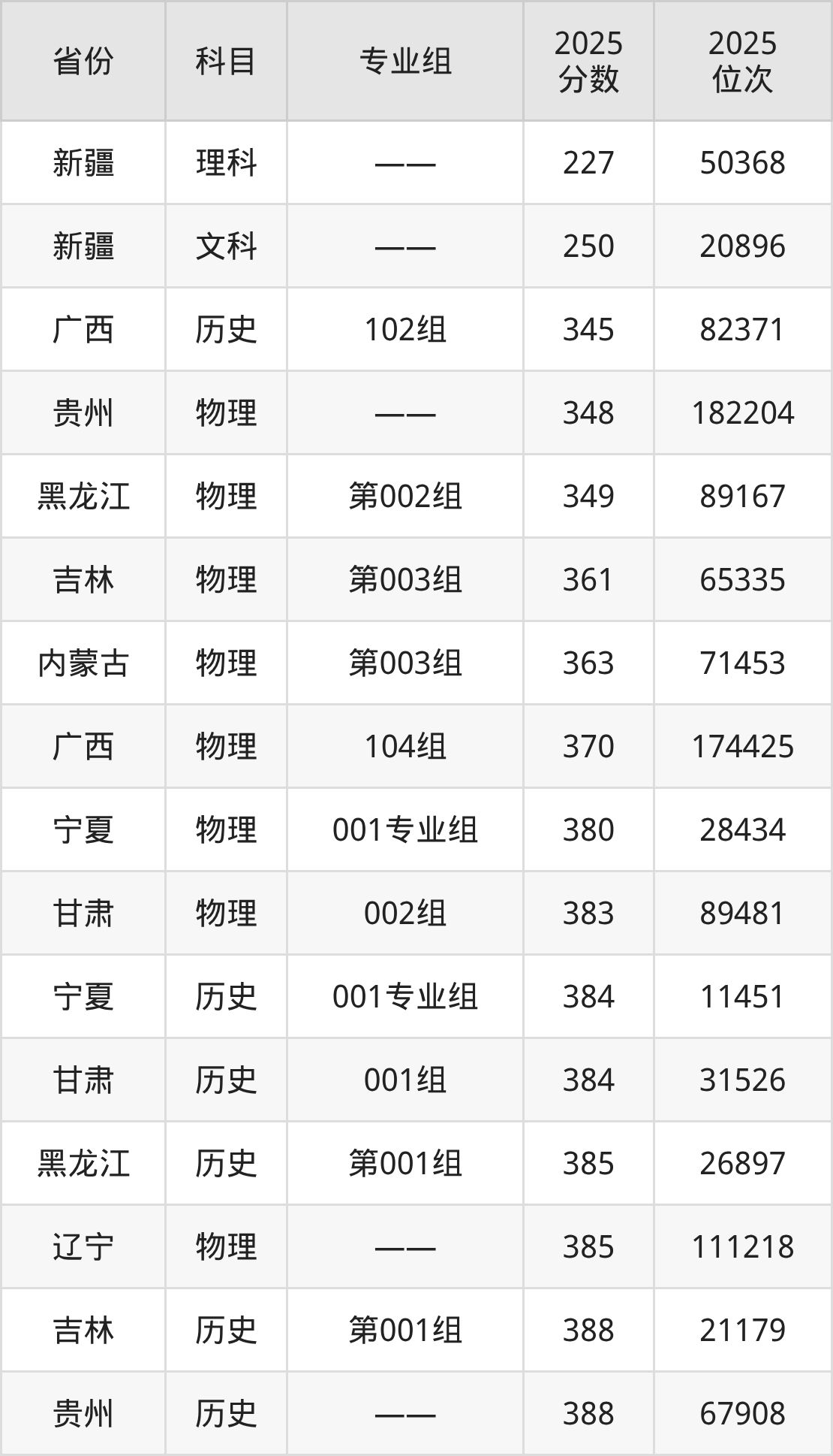 物理类:2025年天津轻工职业技术学院录取最低分是348分(贵州),对应的位次排名是182204名。