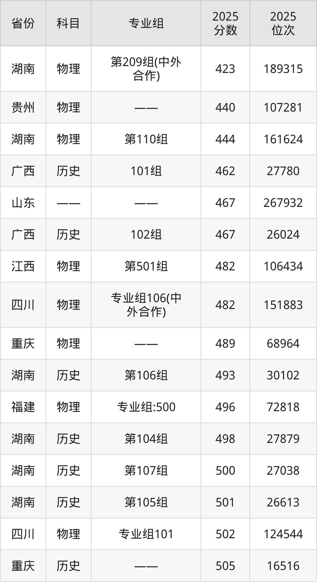 物理类:2025年铜仁学院录取最低分是423分(湖南),对应的位次排名是189315名。