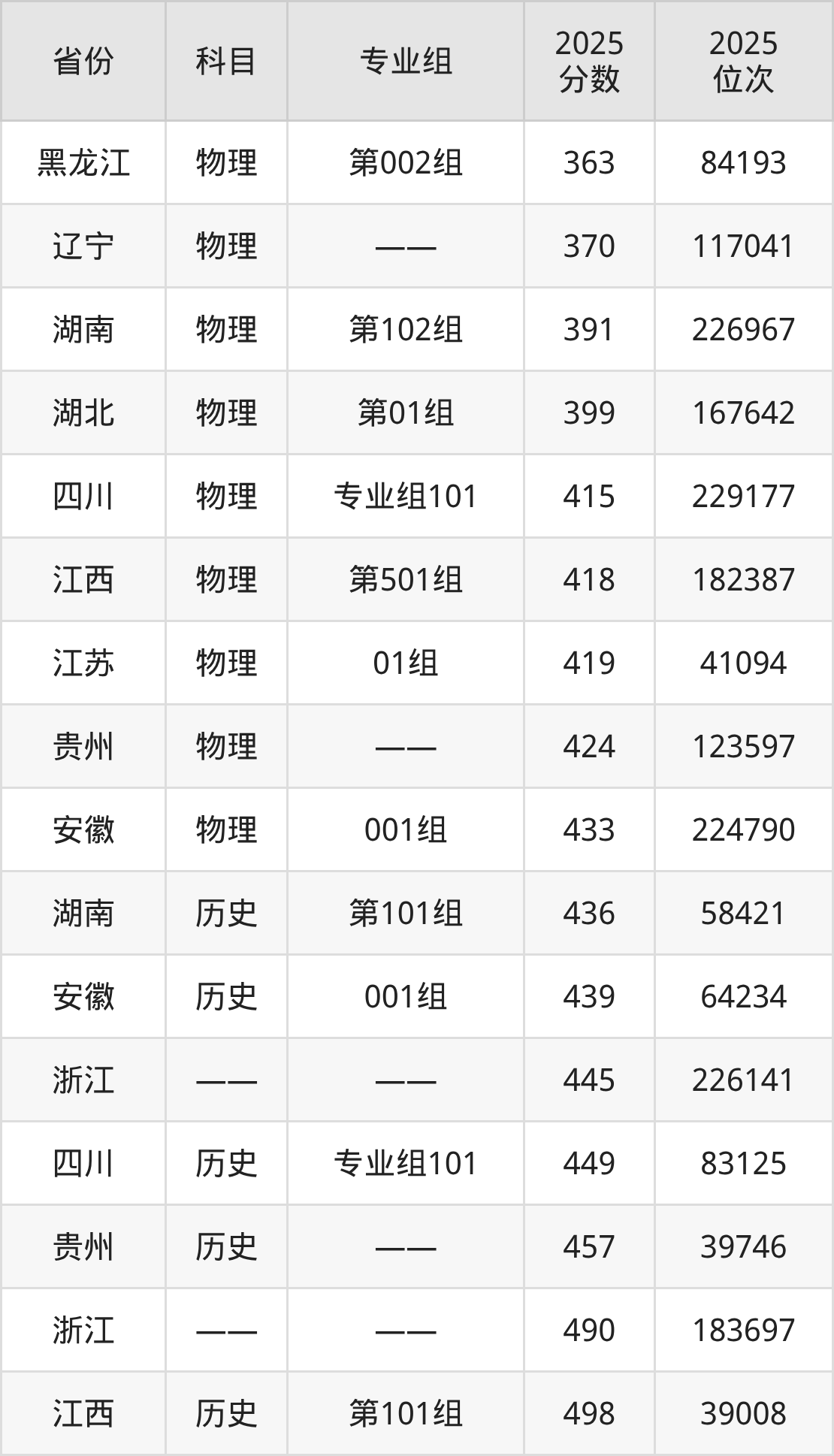 历史类:2025年厦门海洋职业技术学院录取最低分是436分(湖南),对应的位次排名是58421名。