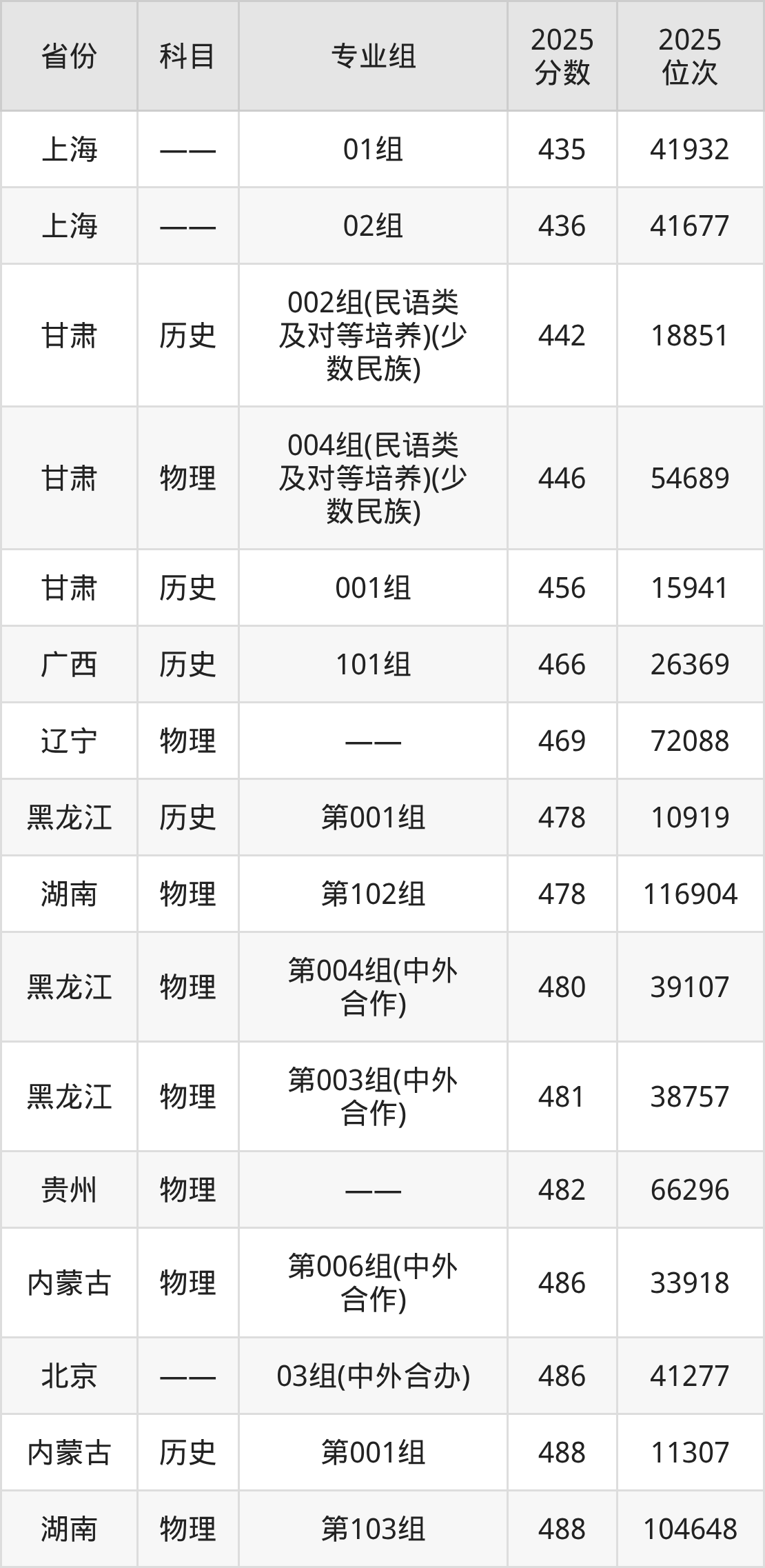 3+3地区:2025年北华航天工业学院录取最低分是435分(上海),对应的位次排名是41932名。