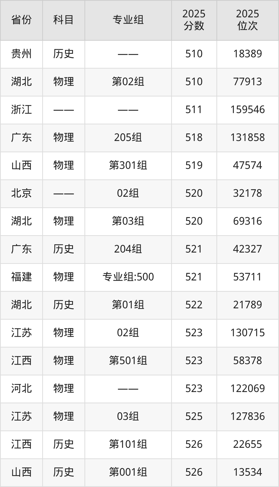 物理类:2025年北华航天工业学院省内录取最低分是523分,对应的位次排名是122069名。建议:如果2026年排名超过122069名,那么被该校录取的概率较大。