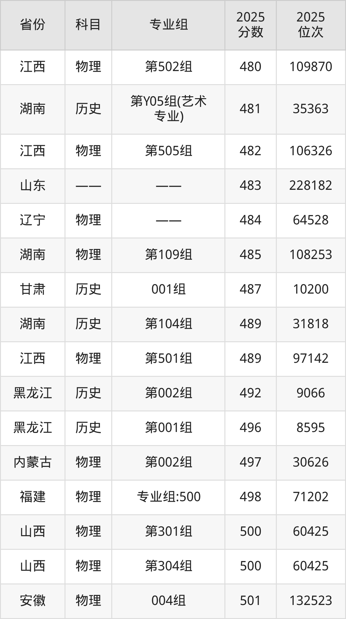 3+3地区:2025年西安文理学院录取最低分是483分(山东),对应的位次排名是228182名。