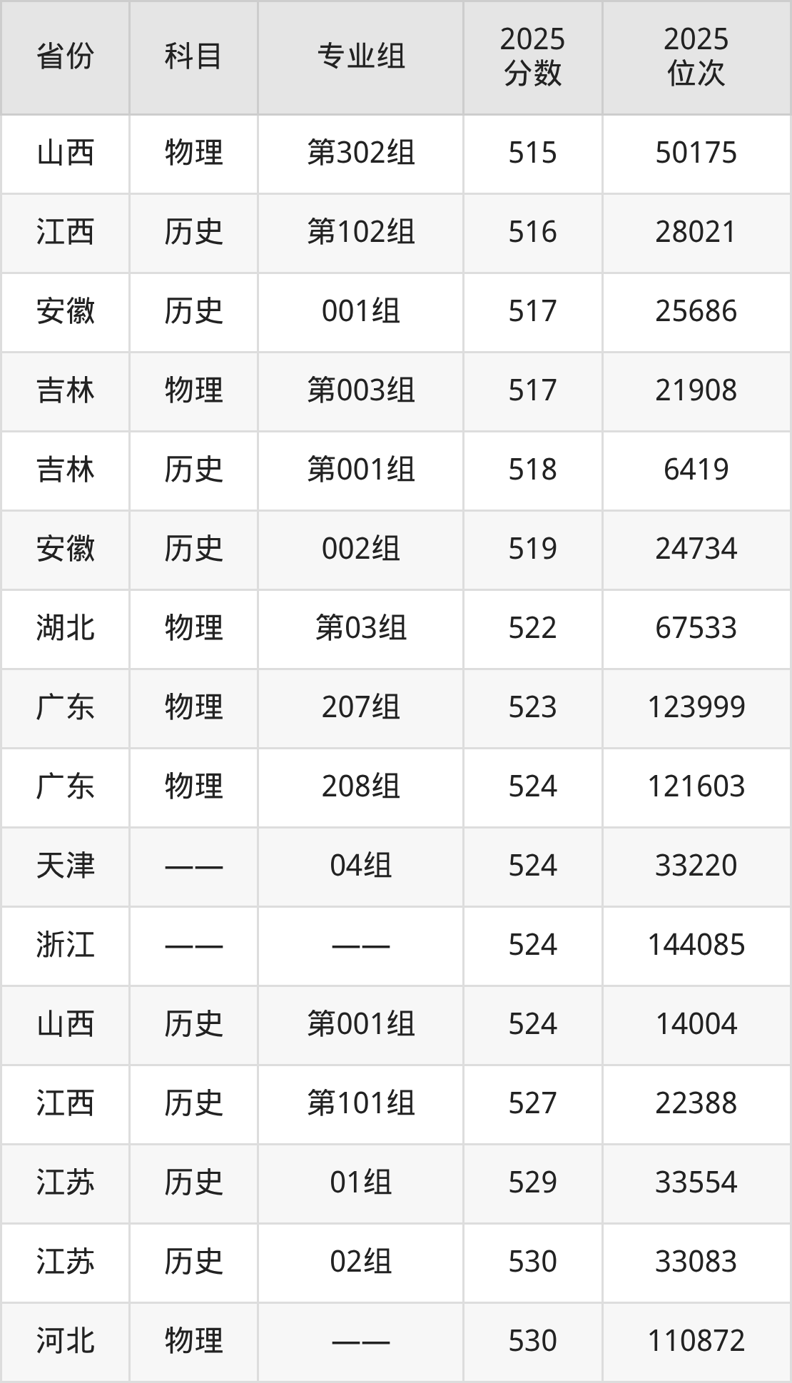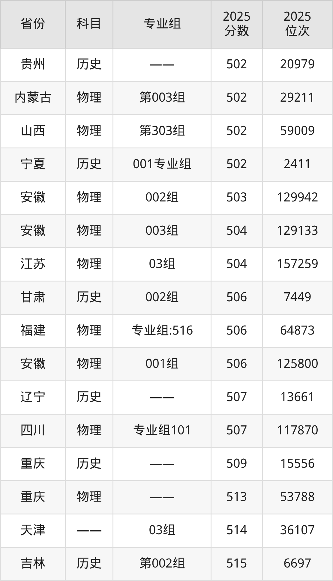物理类:2025年西安文理学院录取最低分是445分(宁夏),对应的位次排名是15352名。