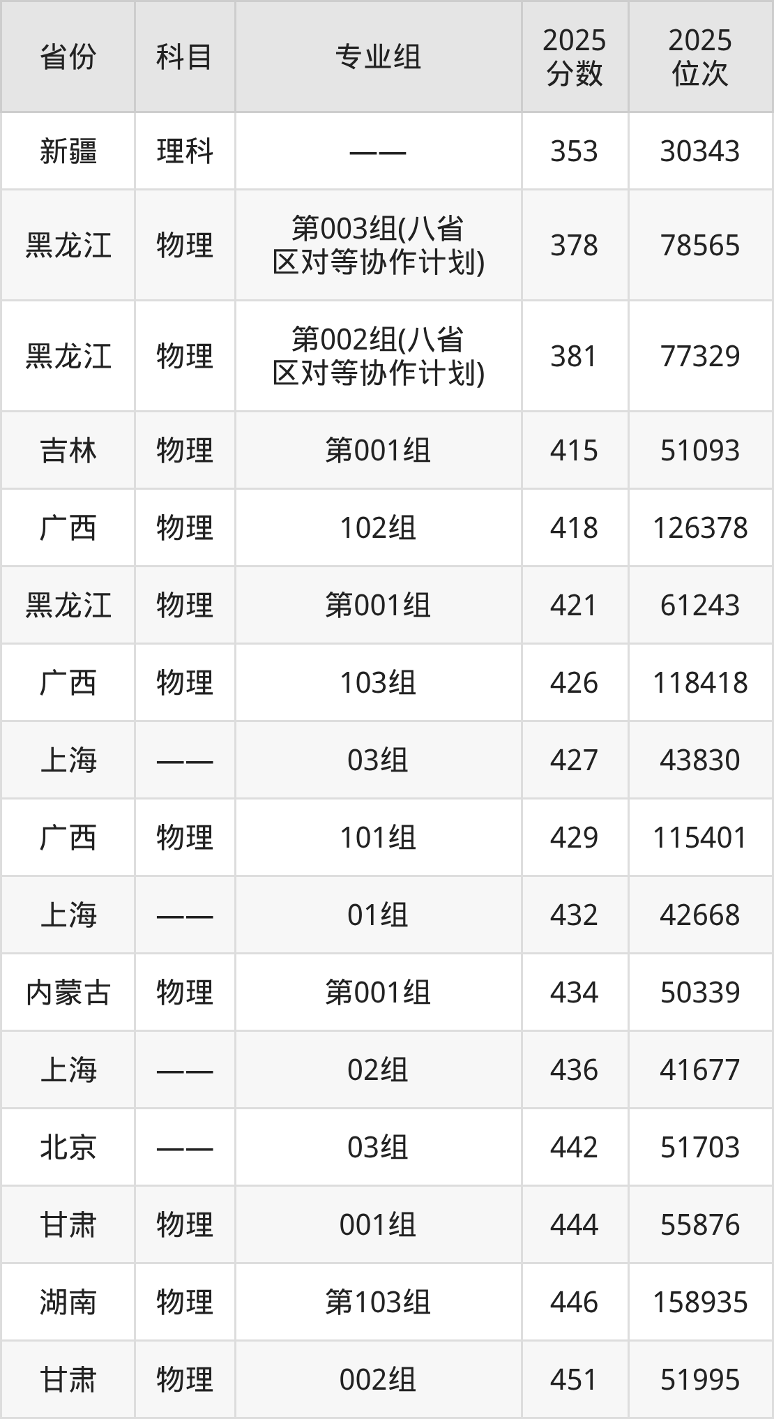 物理类:2025年河北建筑工程学院录取最低分是378分(黑龙江),对应的位次排名是78565名。