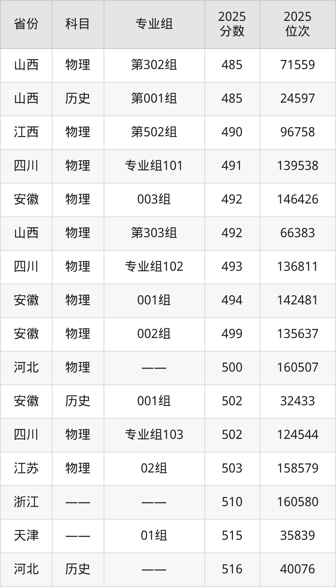 历史类:2025年河北建筑工程学院录取最低分是485分(山西),对应的位次排名是24597名。