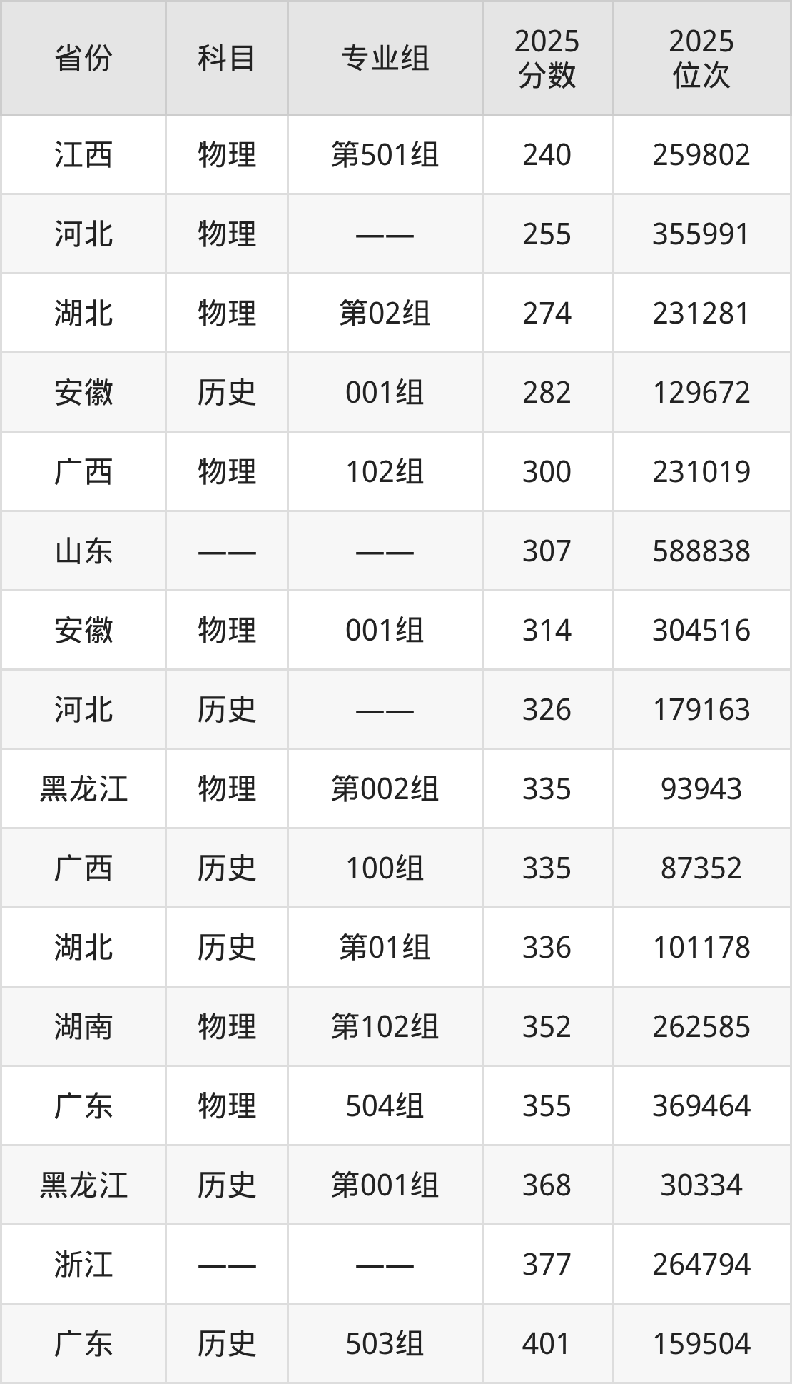 物理类:2025年厦门安防科技职业学院录取最低分是240分(江西),对应的位次排名是259802名。
