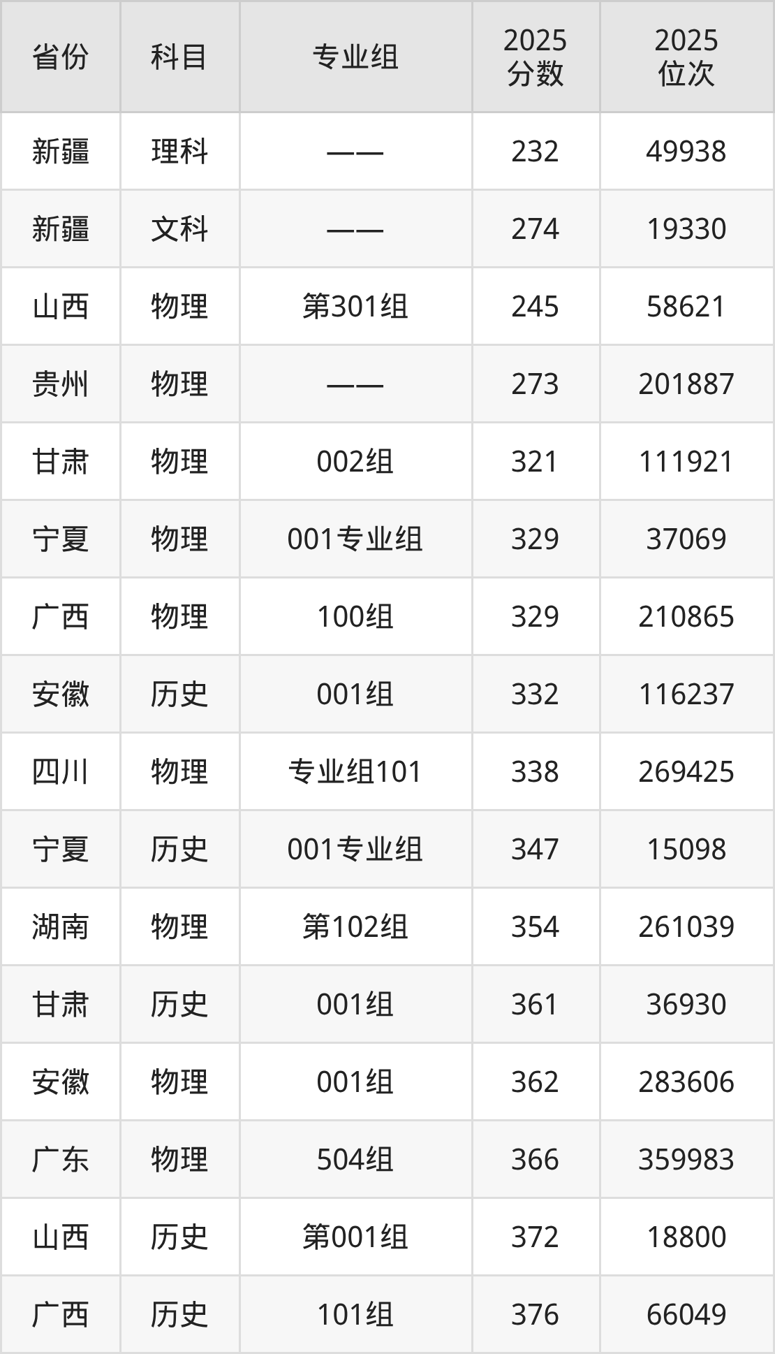 物理类:2025年漳州城市职业学院录取最低分是245分(山西),对应的位次排名是58621名。