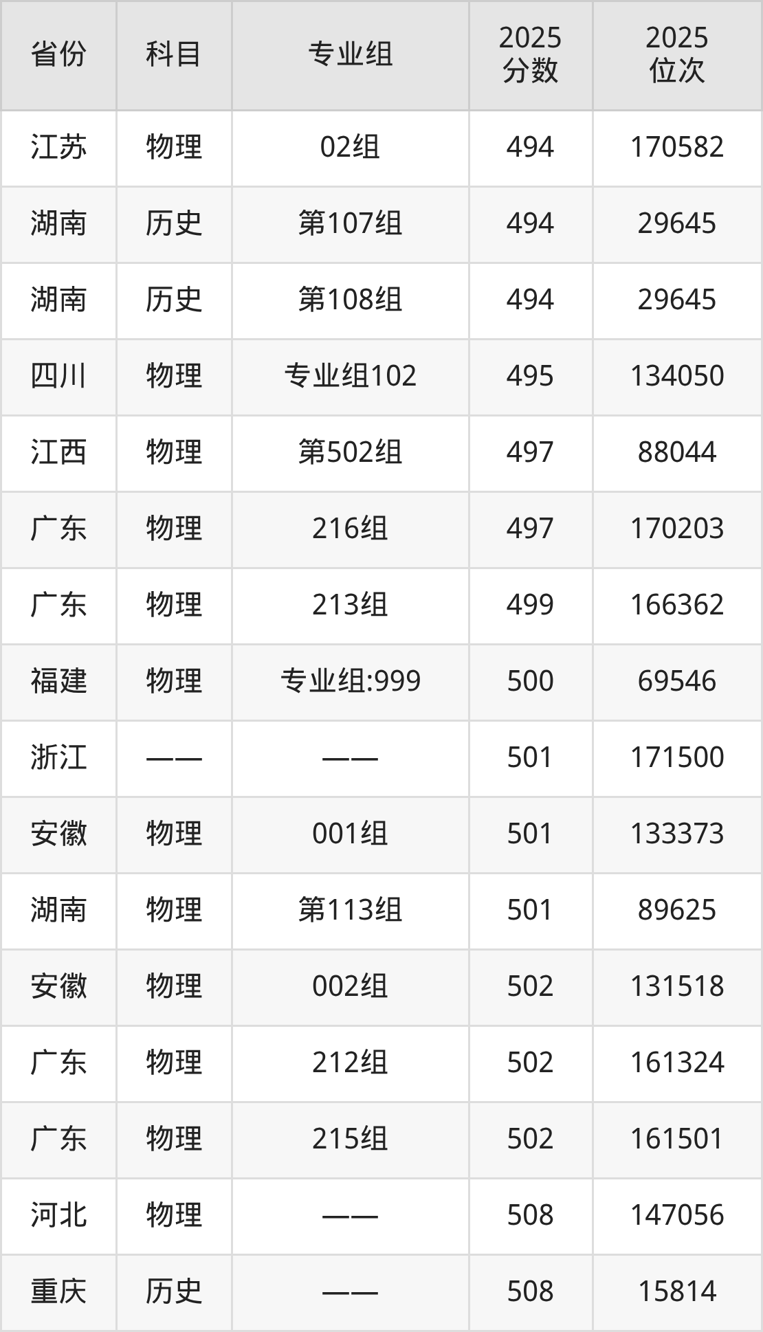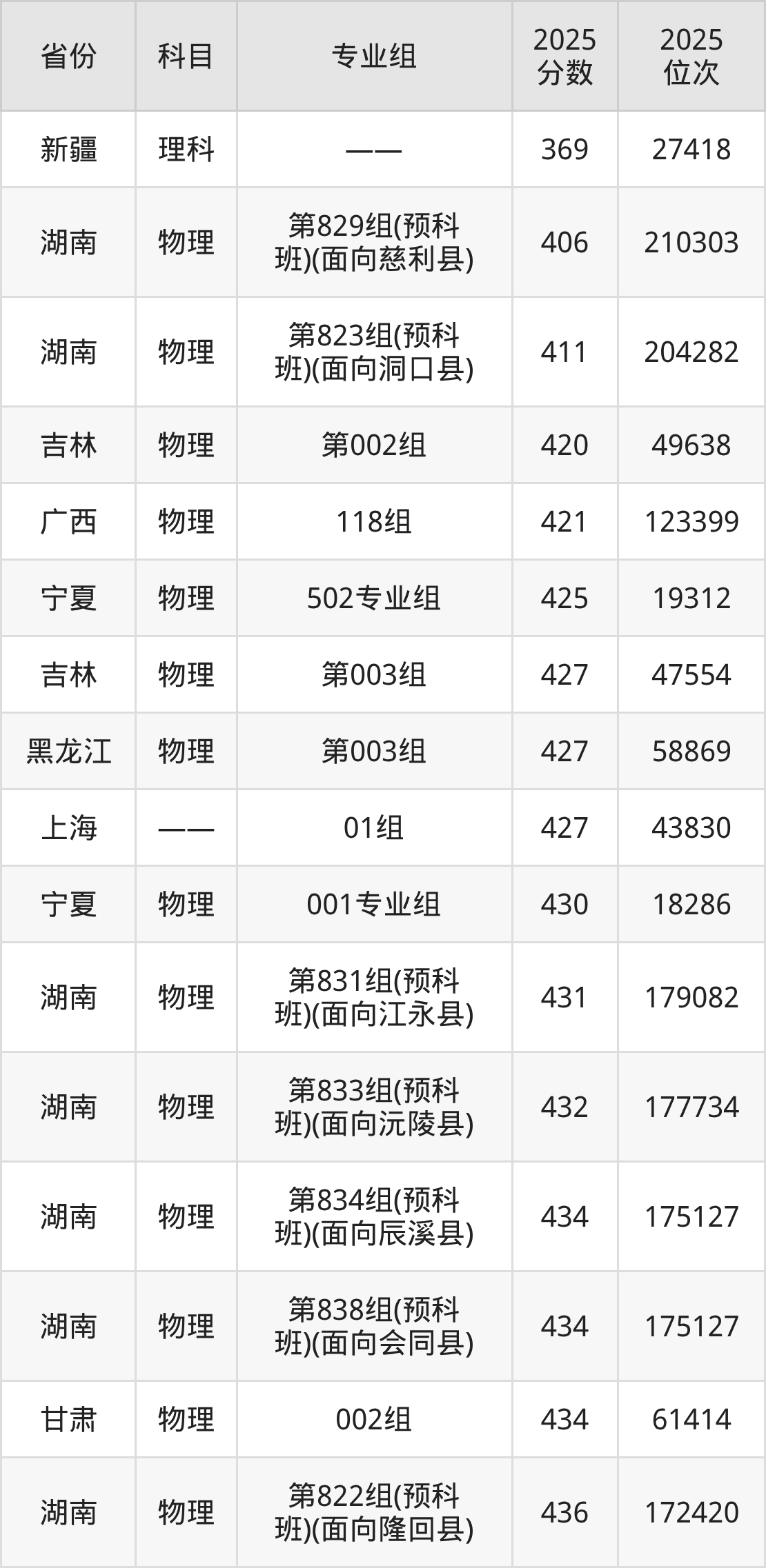 物理类:2025年邵阳学院录取最低分是420分(吉林),对应的位次排名是49638名。