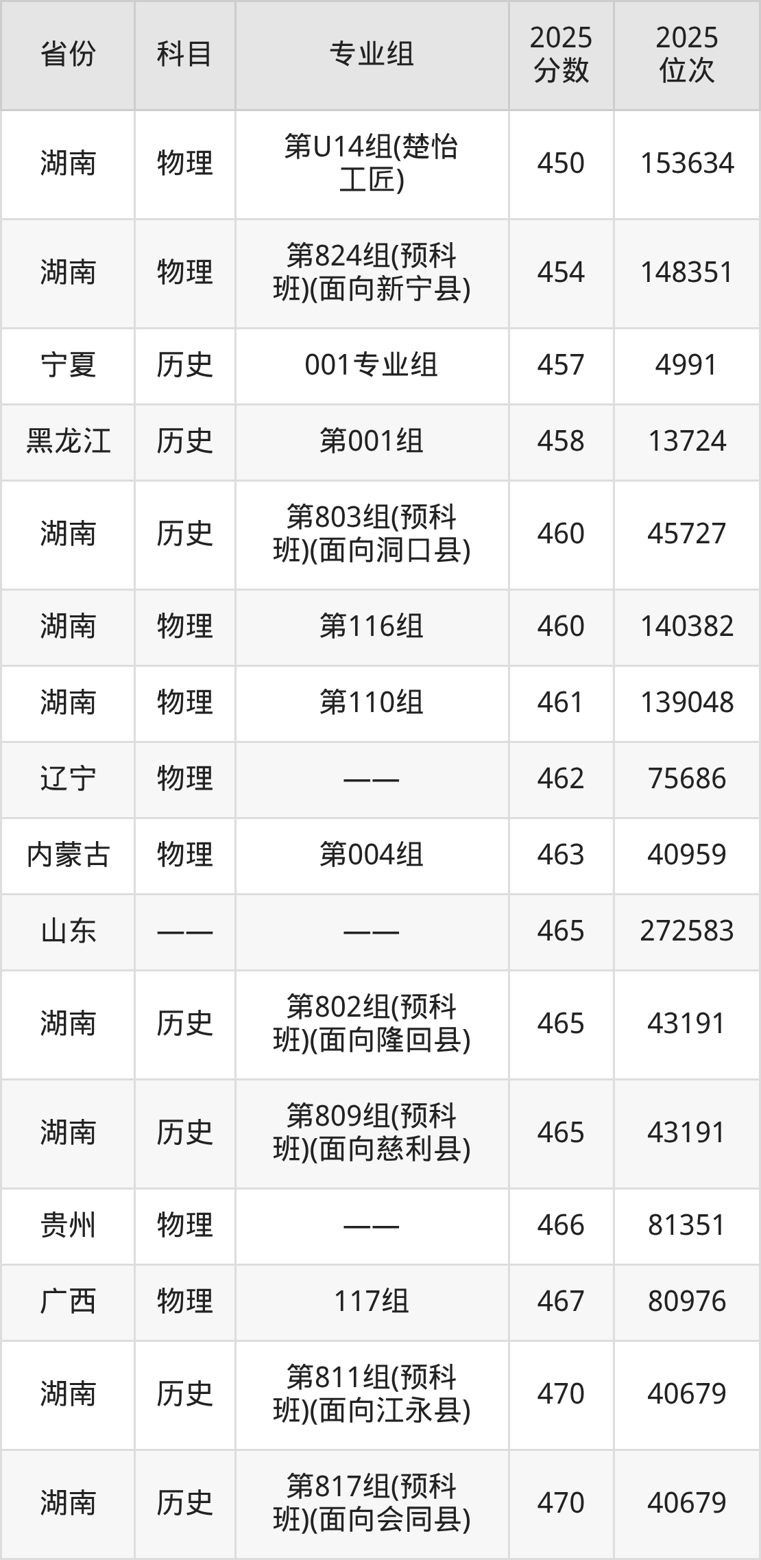 历史类:2025年邵阳学院省内录取最低分是460分,对应的位次排名是45727名。建议:如果2026年排名超过45727名,那么被该校录取的概率较大。