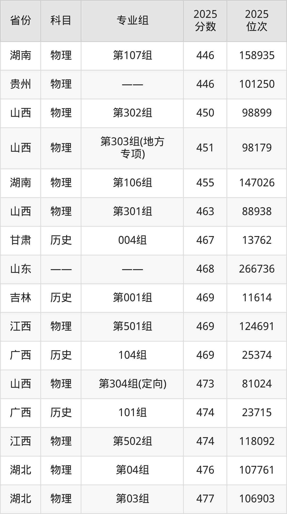 3+3地区:2025年长治学院录取最低分是468分(山东),对应的位次排名是266736名。